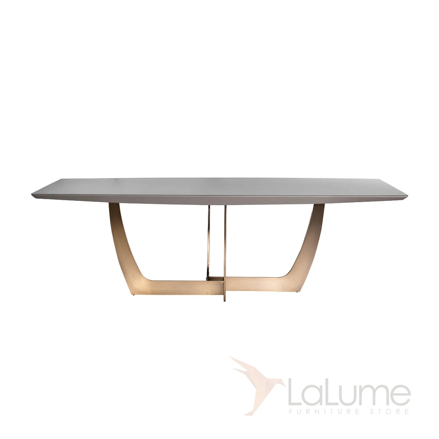 Большой суперсовременный обеденный стол из мебельной коллекции Space от ведущих голландских дизайнеров воплощает последние тенденции европейской интерьерной моды. Столешница из серого МДФ покрыта закаленным 5мм стеклом, обработанным по уникальной технологии, в результате которой поверхность приобретает гладкую и бархатистую фактуру, будто обкатанную морем. Оригинальная фигурная опора медного цвета заменяет традиционные ножки, обеспечивая устойчивость и безопасность конструкции. Все части стола выполнены из исключительно качественных материалов по самым современным технологиям. В нашем ассортименте вы можете подобрать комоды, консоли, журнальные столы, ТВ-тумбы и стеллажи для спальной, столовой или гостиной в стиле Space. В сочетании с дизайнерскими светильниками ваш дом приобретет красоту и лоск интерьеров с обложек модных журналов.