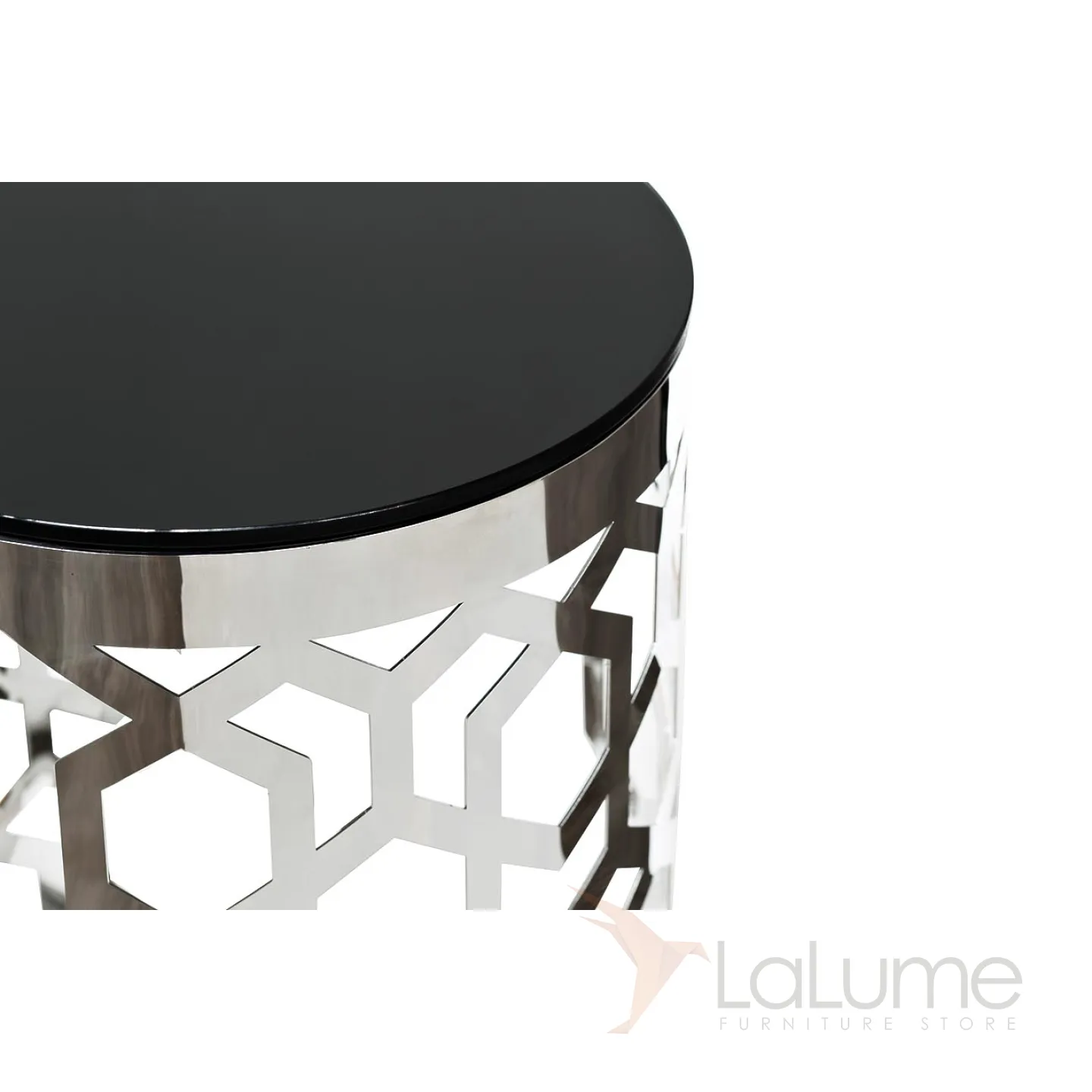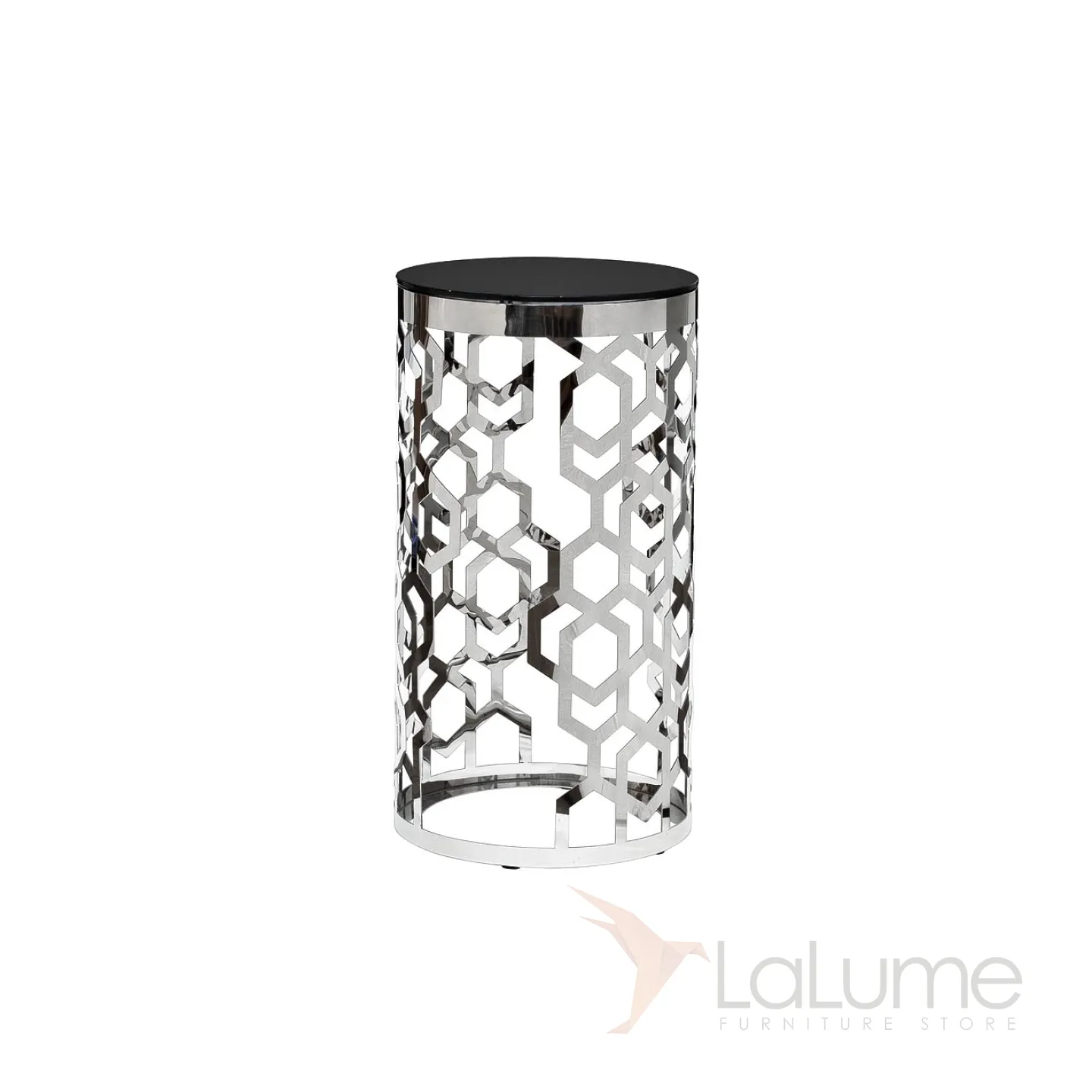 Столик журнальный круглый высокий с черным стеклом 13RXFS3053-SILVER от LaLume