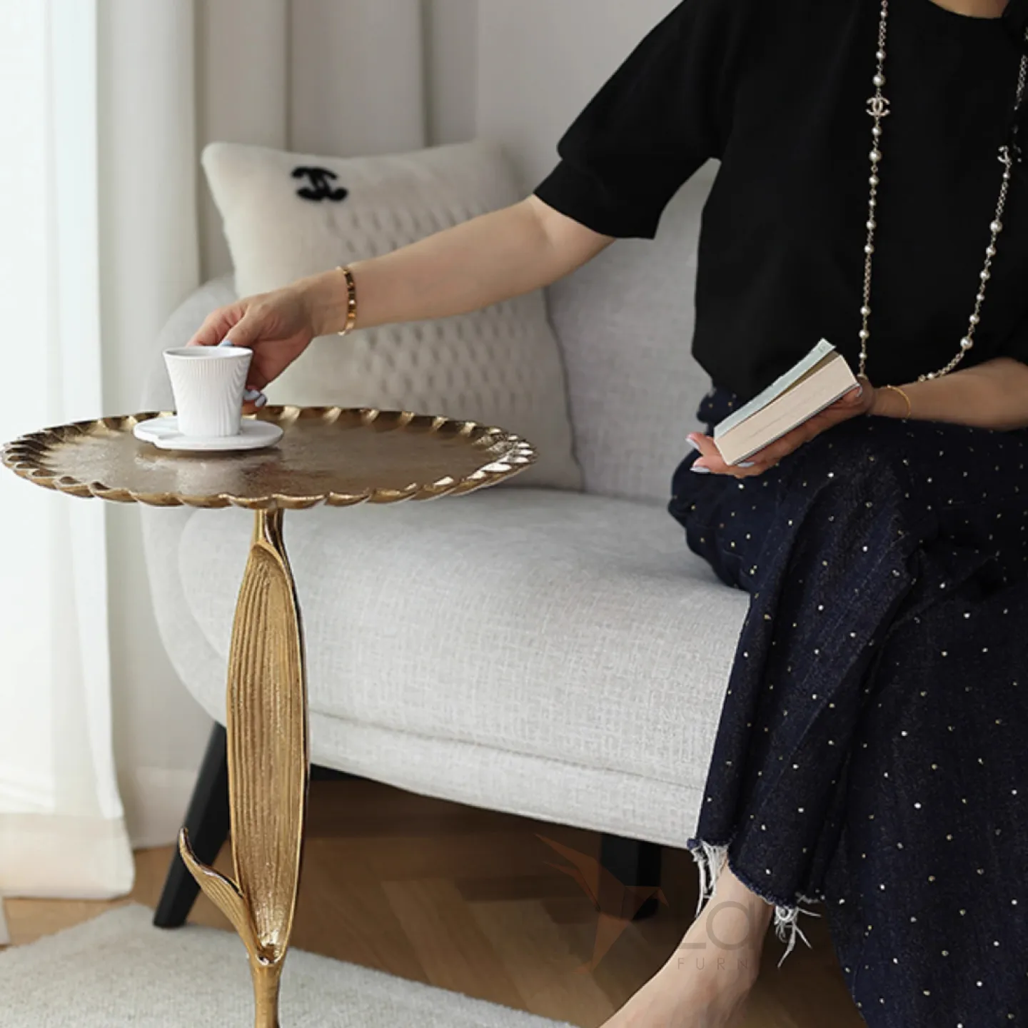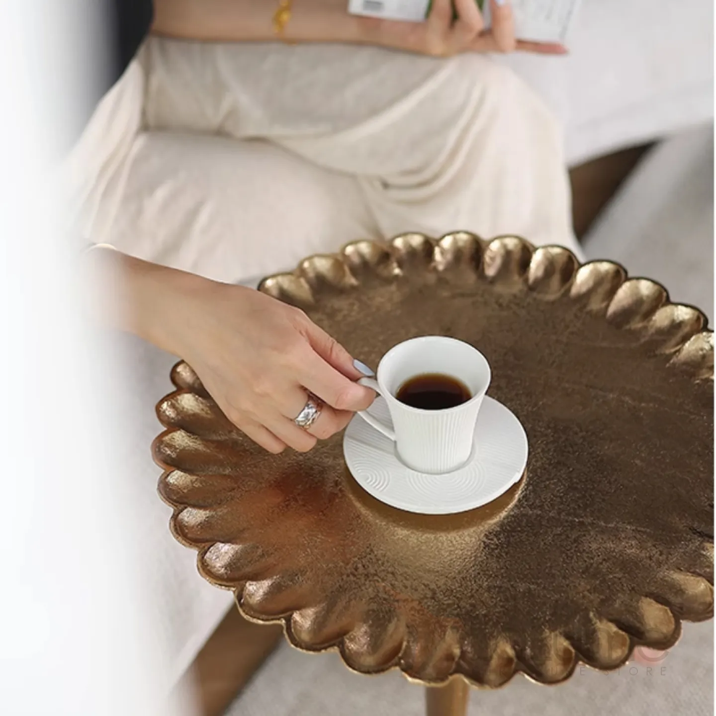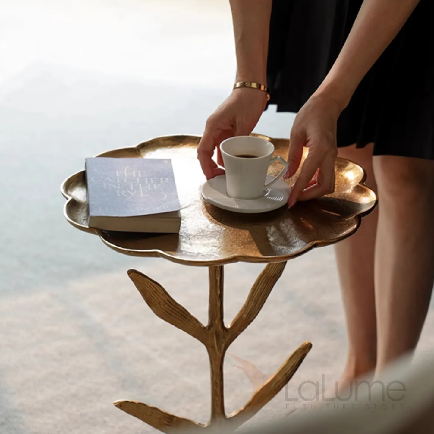 Индийский дизайнерский столик из алюминия в виде подсолнечника Qikuo от LaLume
