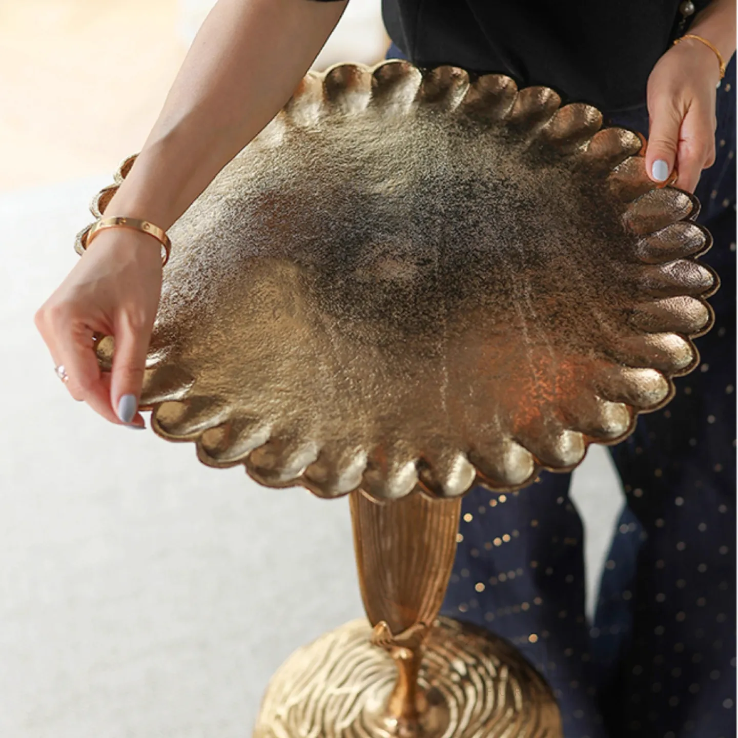 Добавьте стиль и элегантность в ваш интерьер с набором из двух декоративных столиков в виде солнечного цветка. Эти изящные изделия вдохновлены природой и станут прекрасным акцентом в любой комнате.