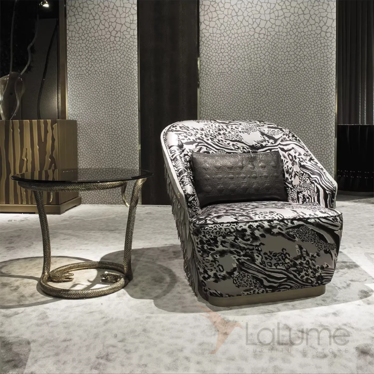 Столик «Змея» от Yanshe и LaLume — это скульптурный арт-объект, превращённый в функциональный предмет мебели. Его извивающееся основание напоминает движение змеи, символизируя гибкость, трансформацию и силу. Этот столик не просто украшает пространство — он задаёт ему настроение и характер.