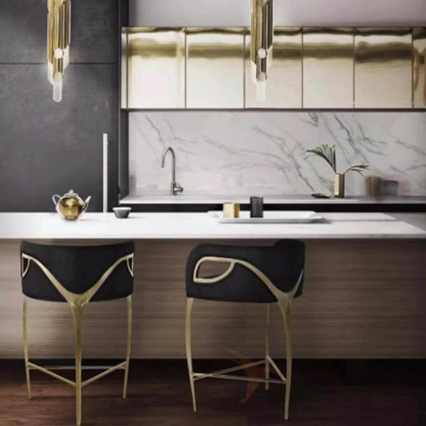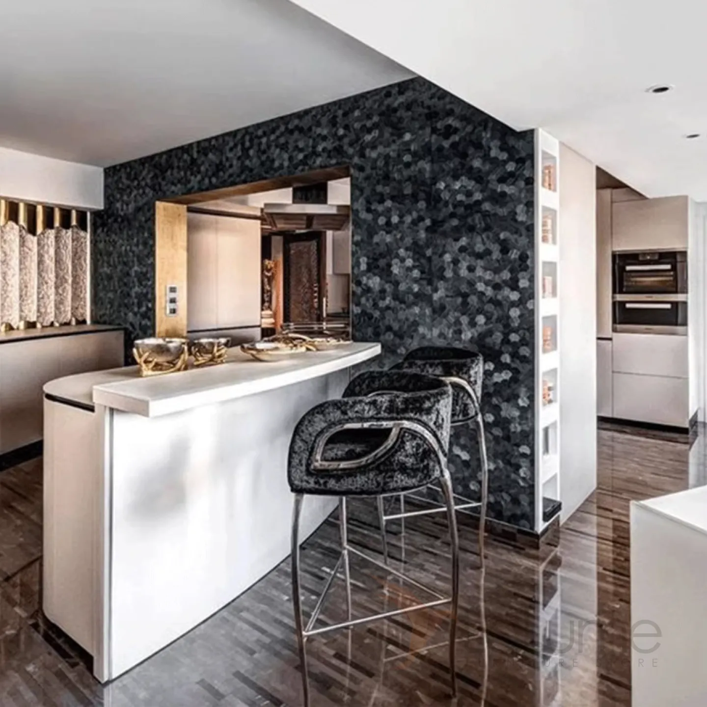✔ Сильный визуальный акцент — сочетается с арт-деко, современным и футуристичным стилями