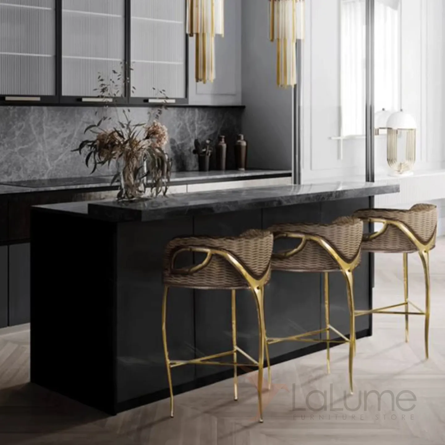 ✔ Барная высота и устойчивая база — идеально подходит для островной кухни, барной стойки или лаунж-зоны
