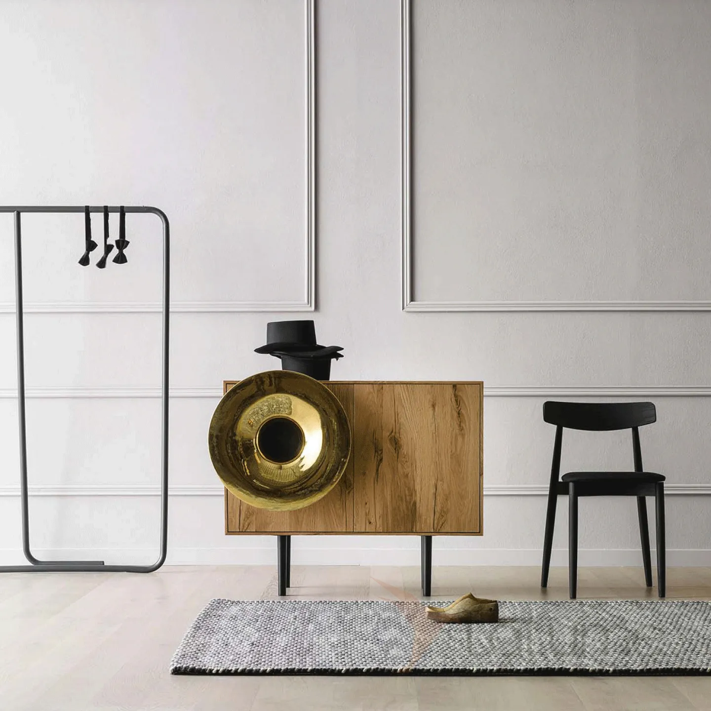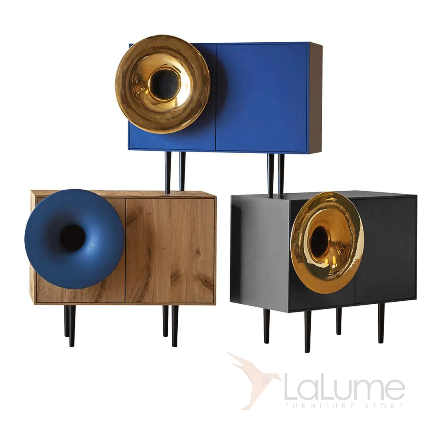 Деревянный сервант доступен в широкой палитре цветов. Ножки и декоративный рожок на фасаде выполнены из стали. Вы можете подобрать идеальное цветовое решение для вашего интерьера, а также выбрать размер с двумя или тремя дверцами