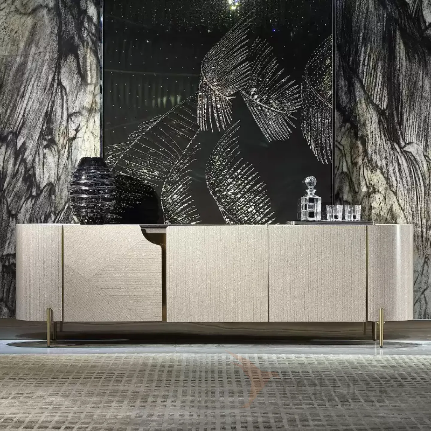 Эта поистине уникальная тумба под телевизор, изготовленная из красного дерева, с медными ножками и отделкой из натурального шпона, станет настоящим украшением вашего дома. Она внесёт в него атмосферу изысканности и роскоши. Тумба оснащена тремя распашными дверцами, что позволит вам удобно разместить все необходимые предметы.