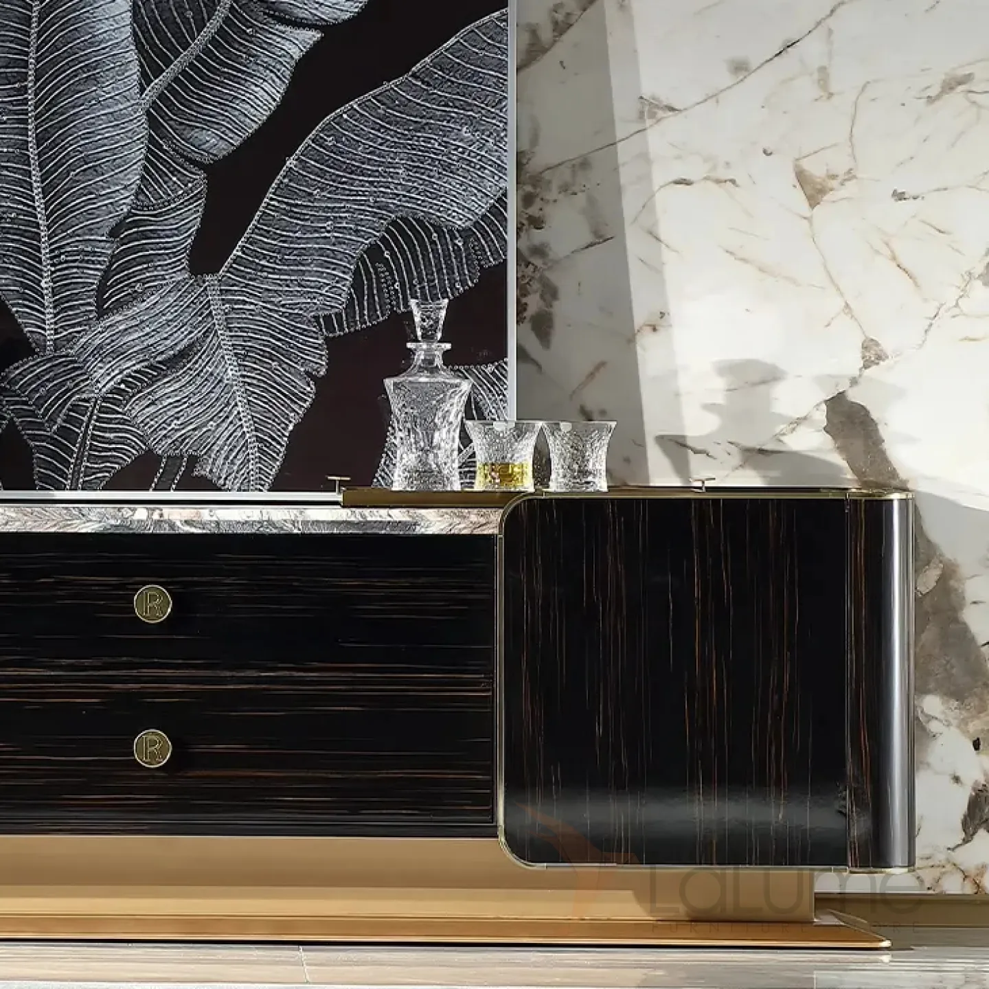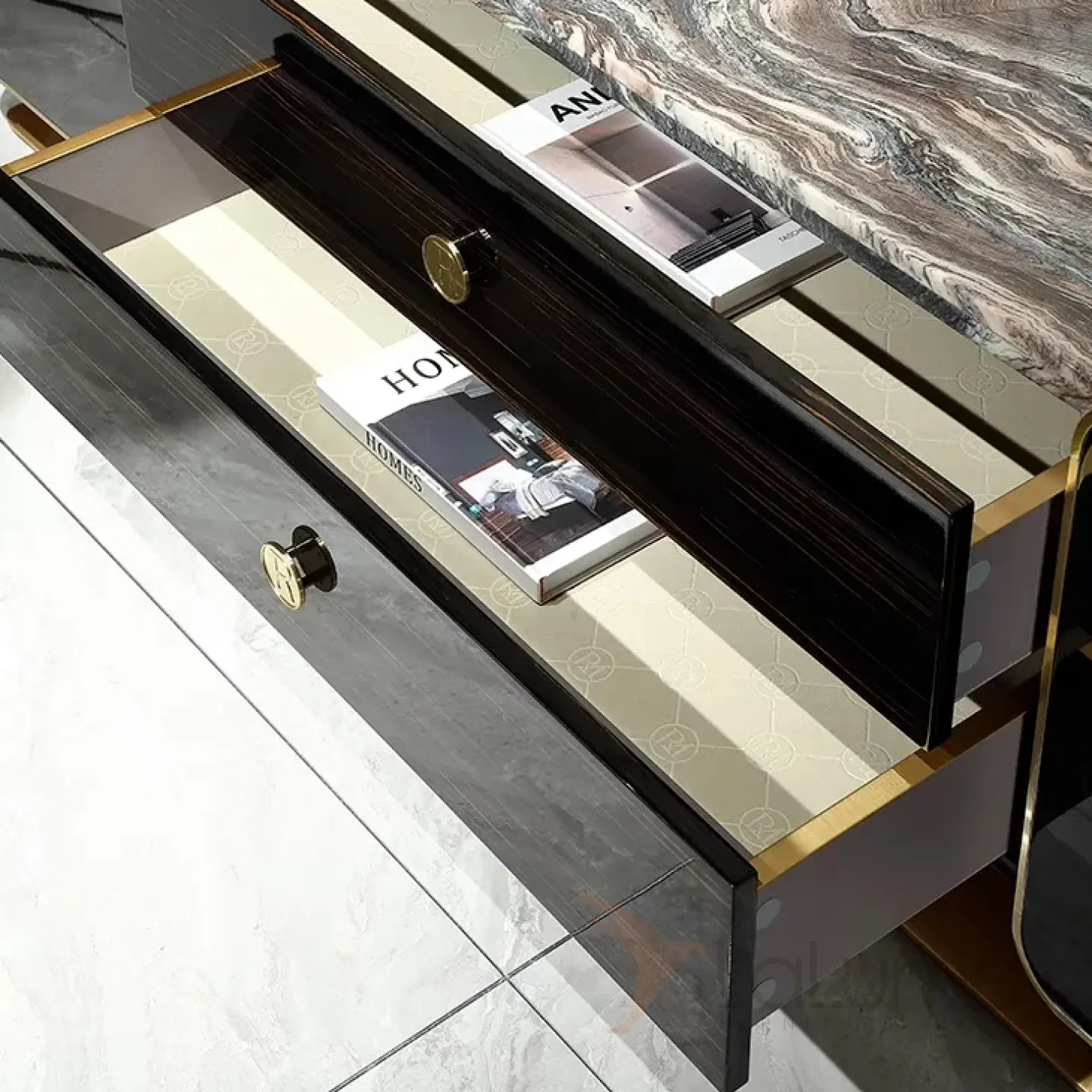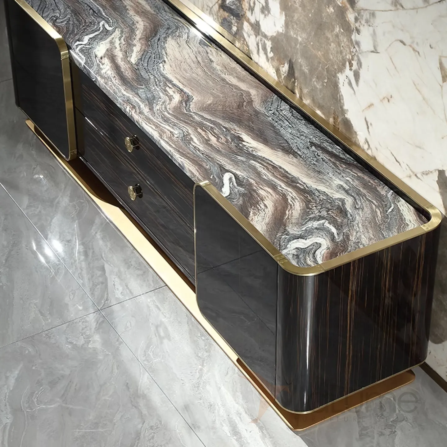 Роскошная тумба под телевизор MIVICA из красного дерева и мрамора TB38197-32