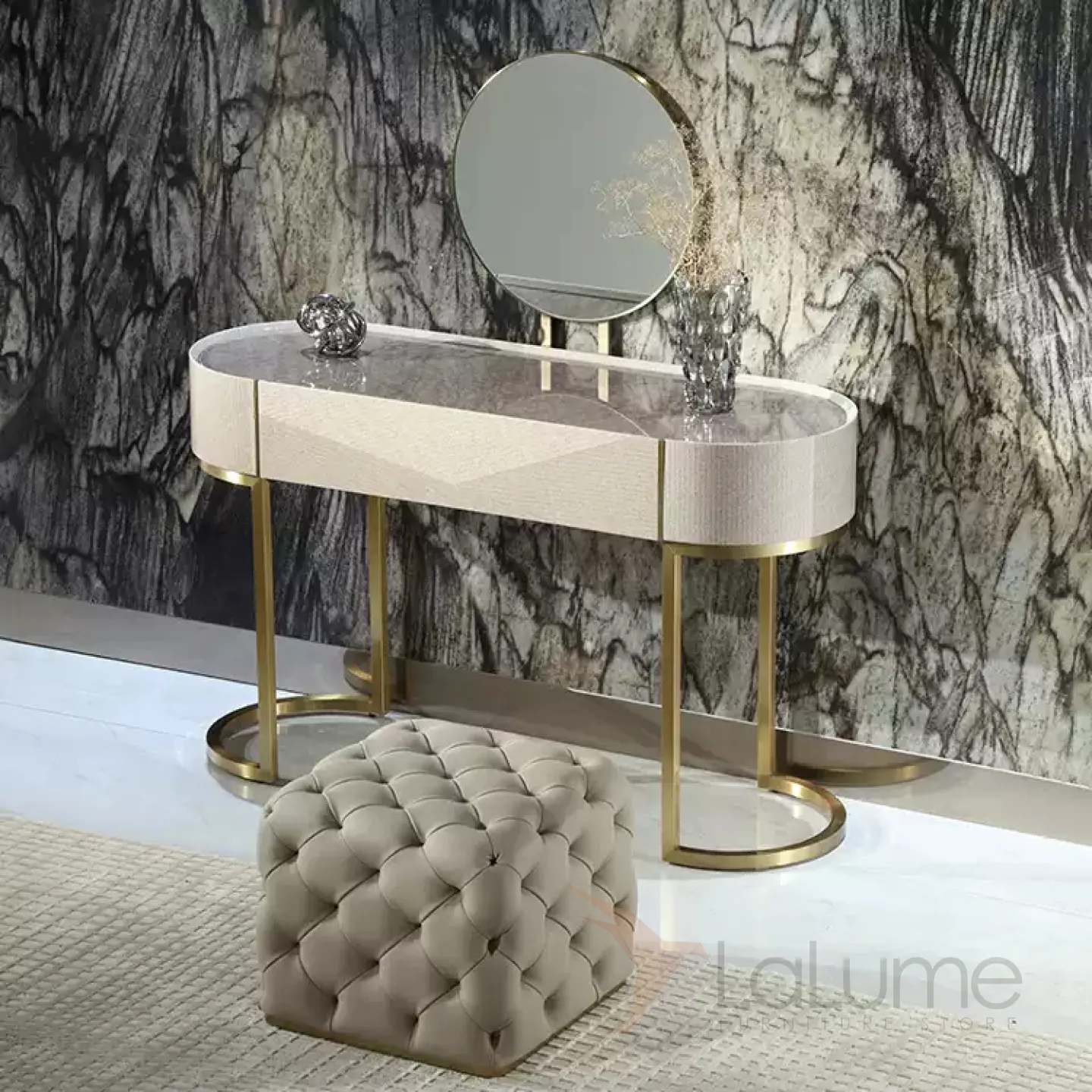 Элегантный и удобный табурет из натуральной кожи в форме куба станет прекрасным дополнением к туалетному столику. Он изготовлен из красного дерева, а обивка из кожи придает ему поистине роскошный вид, который будет радовать глаз и станет настоящим украшением вашего интерьера.