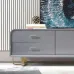 Стильная тумба под телевизор из бука с изящной конструкцией ножек, выполненной в золотистом цвете. Гладкая столешница, изготовленная из качественного шпона, имеет оригинальную форму, что придаст интерьеру особый шарм. Функционал тумбы включает в себя два ящика и две дверцы.
