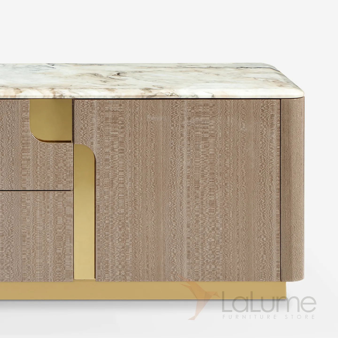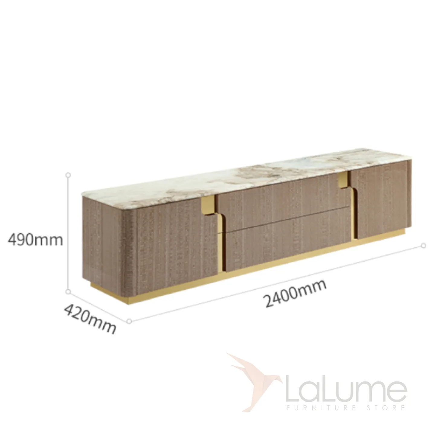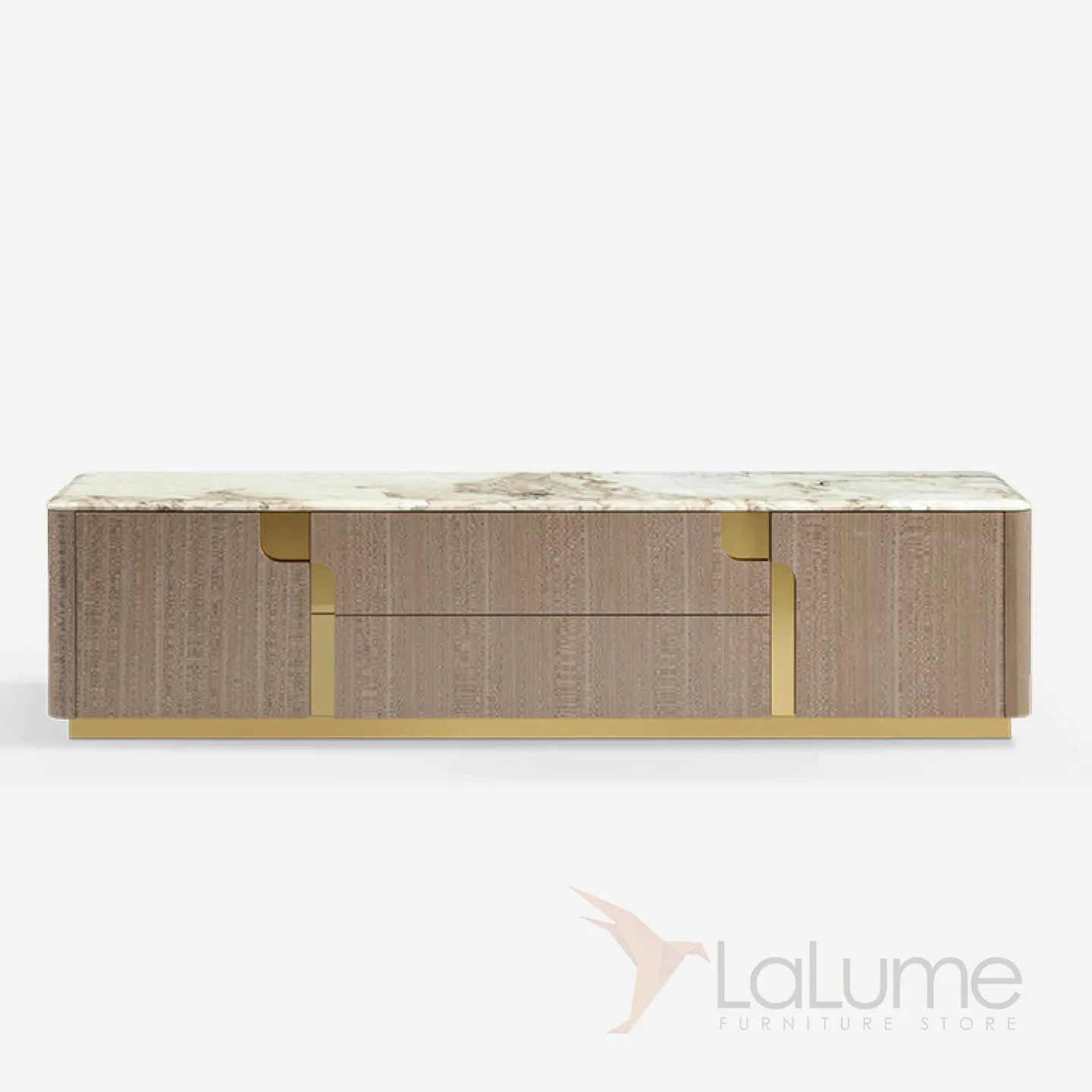 Великолепная тумба под телевизор, созданная из высококачественной древесины и украшенный натуральным шпоном, станет настоящим украшением вашего интерьера. Его ножки из нержавеющей стали добавляют изысканности и стиля. Столешница из натурального мрамора придаёт ему особую роскошь.