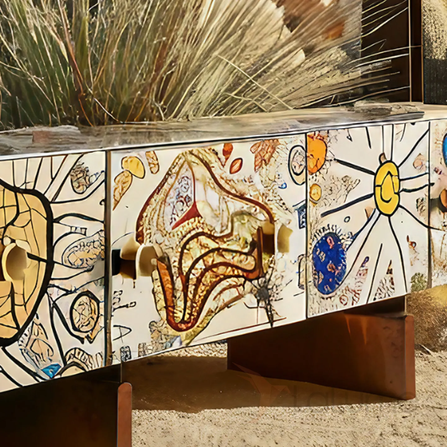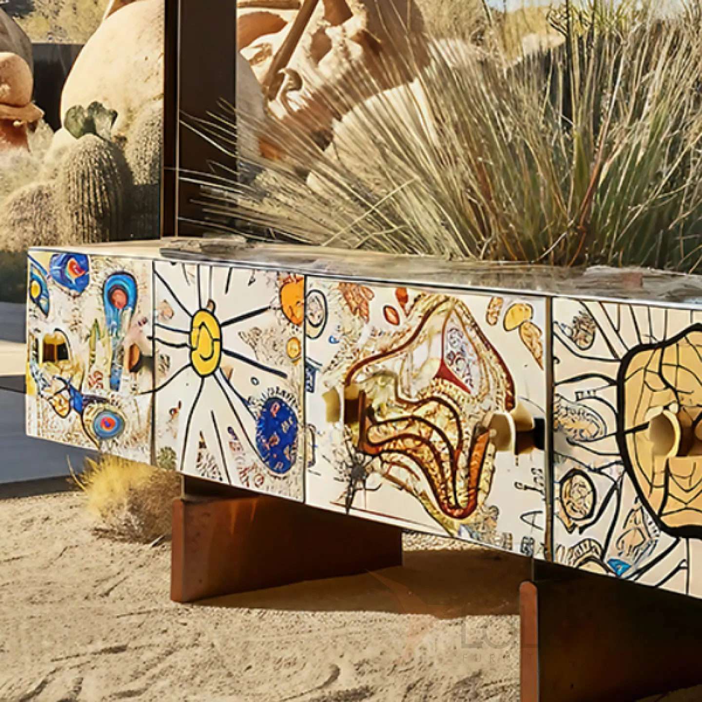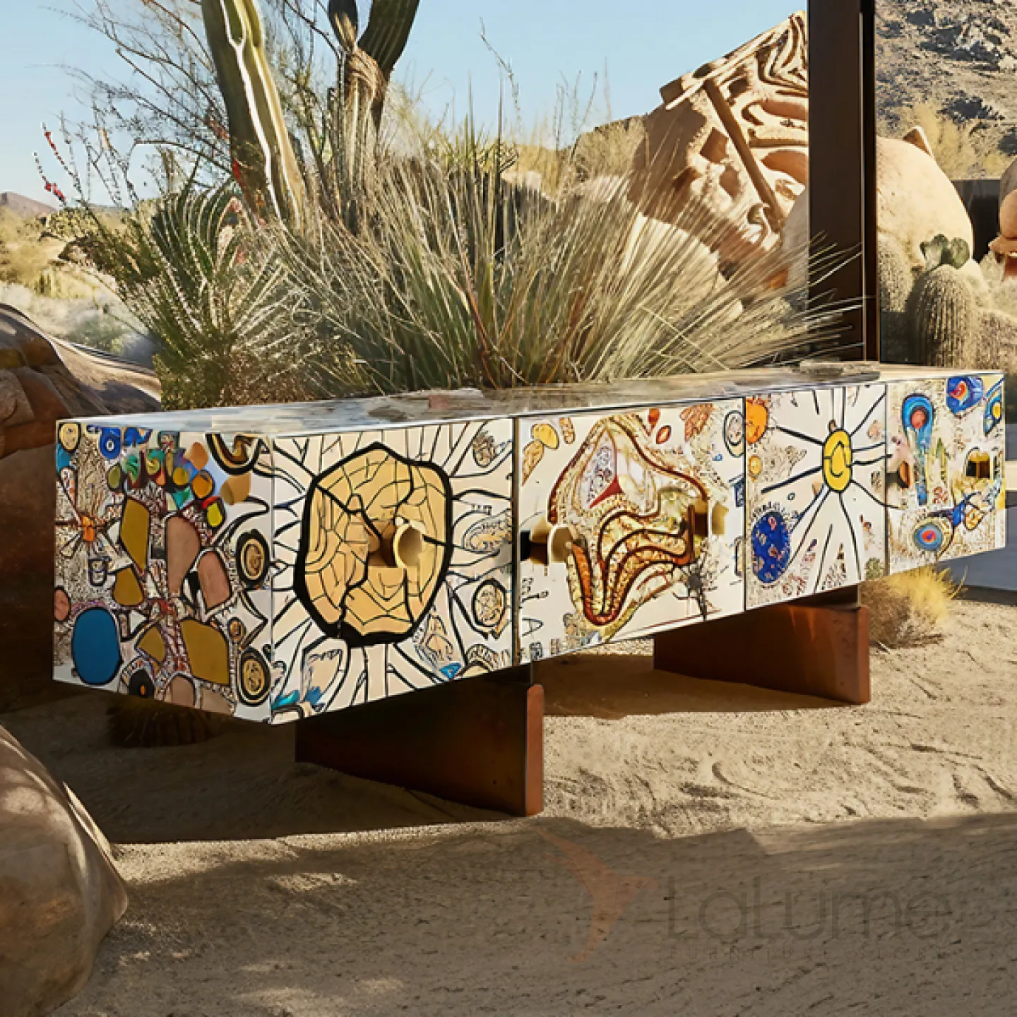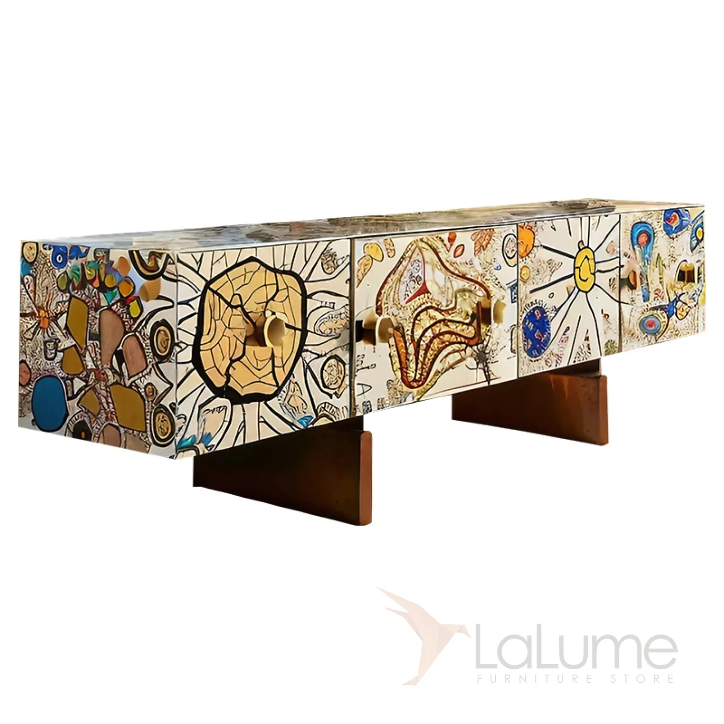 Тумба под телевизор в стиле поп-арт Love Creation от MIVICA из дерева с ручной росписью TB38593-32