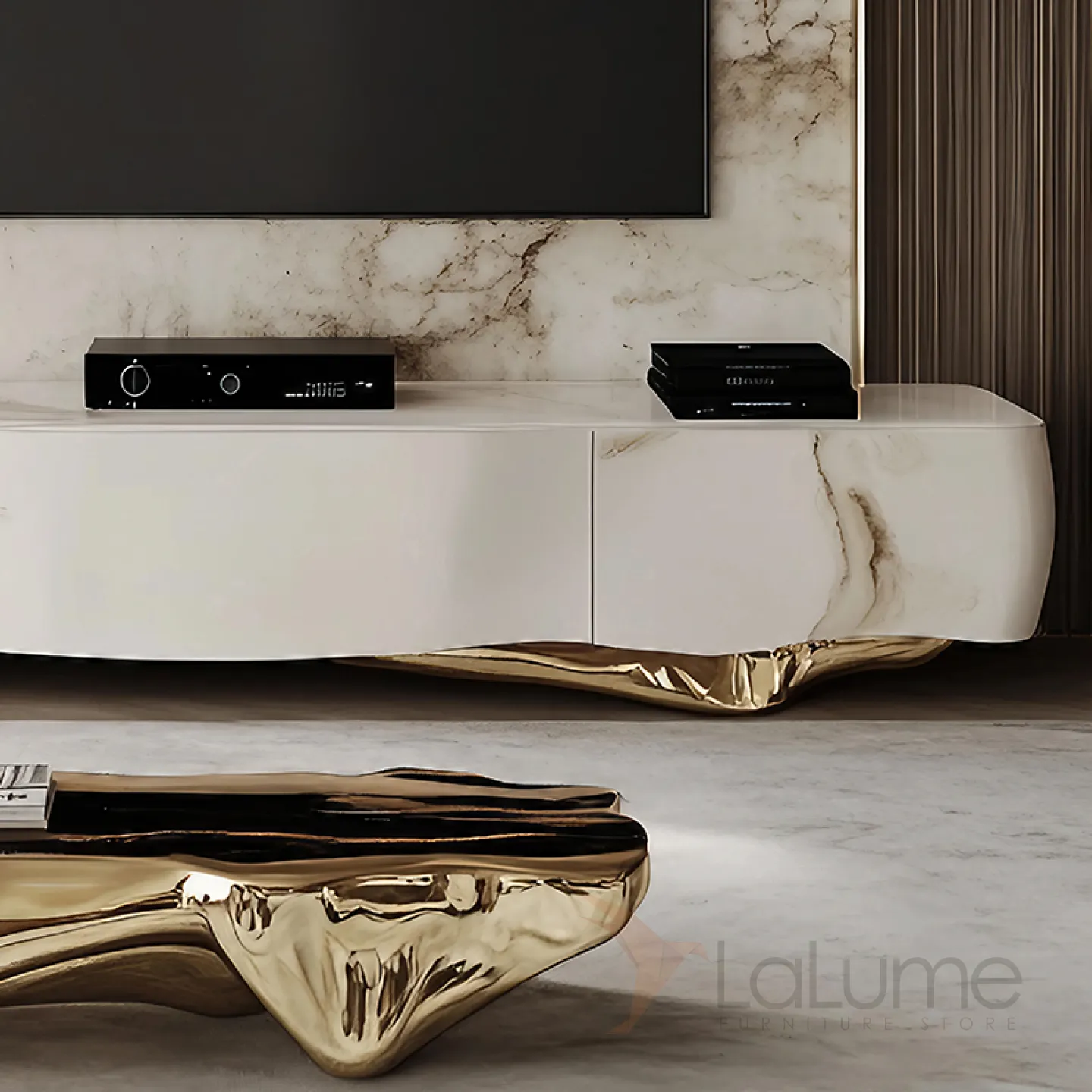 Тумба для телевизора, выполненная из дерева и сплава ASA с нанопокрытием, отличается своей элегантностью и изысканностью. Её плавные линии и блеск придают ей особый шарм. В выдвижном ящике можно хранить все необходимые предметы.