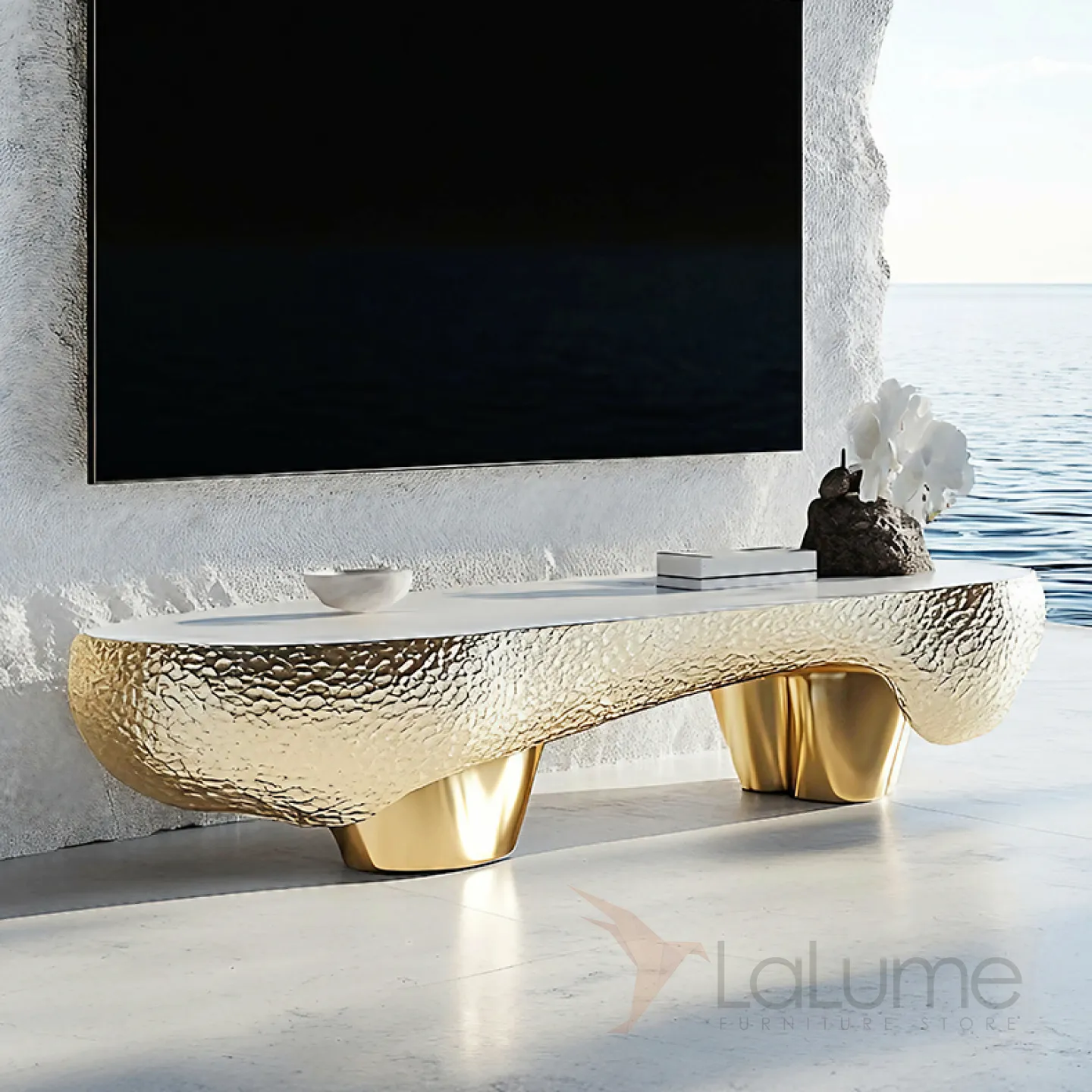 Тумба под телевизор, созданная из древесины и композитного материала ASA с нанопокрытием, впечатляет своей элегантностью и утончённостью. Её изящные линии и блестящая поверхность придают неповторимый шарм.