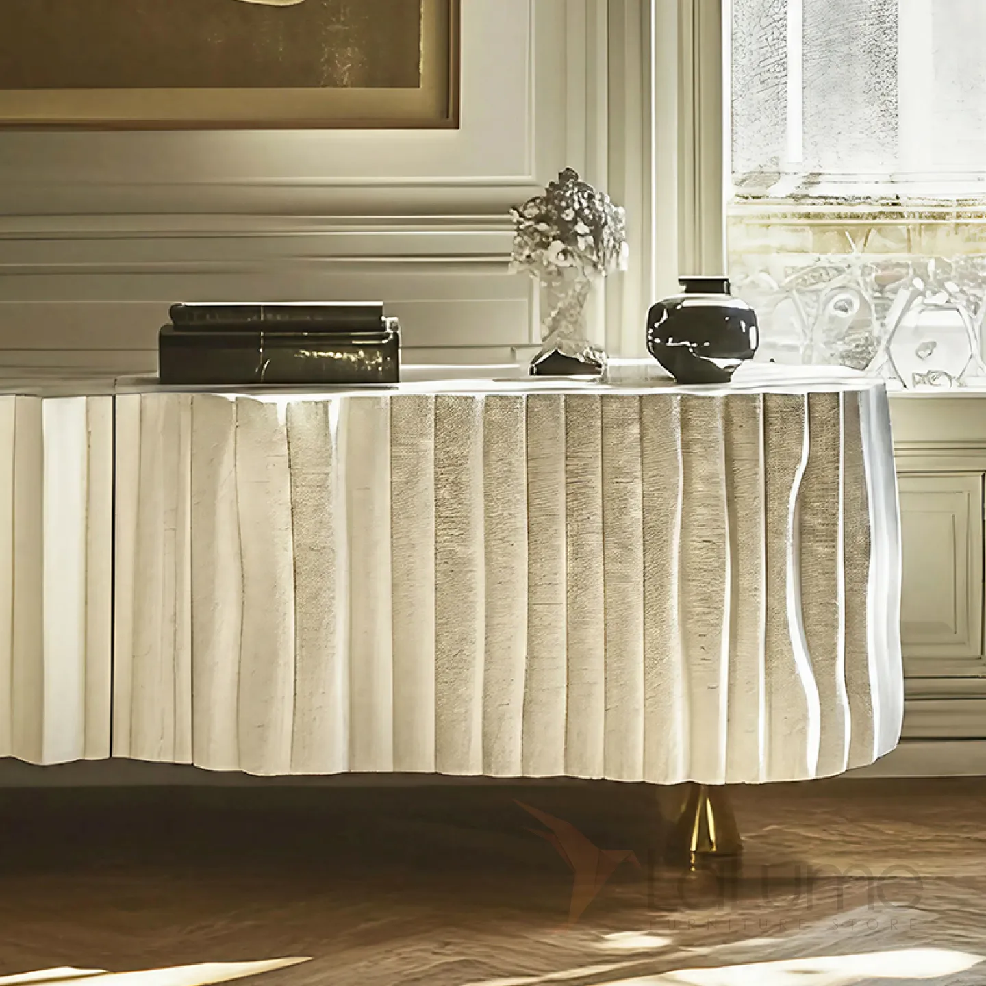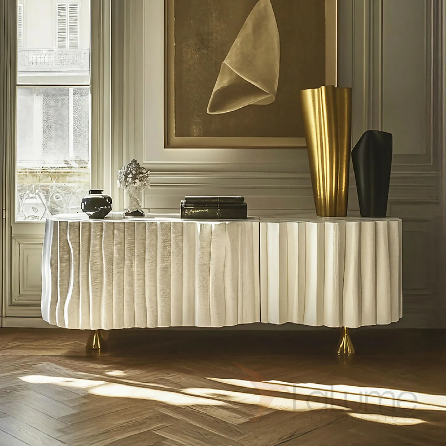 Тумба под телевизор создана из дерева и композита ASA с нанопокрытием, поражает своим утончённым дизайном. Плавные линии и блестящая поверхность придают ему неповторимый шарм.