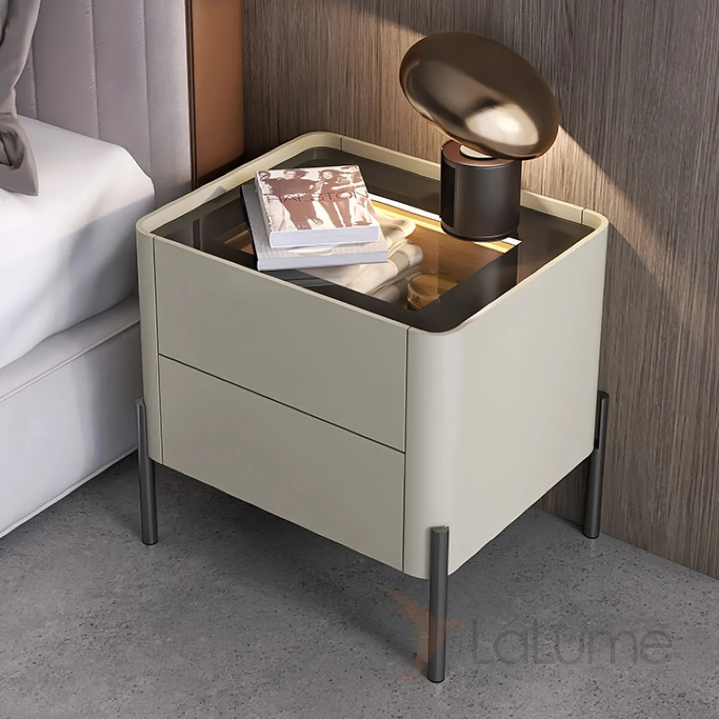 Изящная прикроватная тумба Haotai от LaLume со стеклянной столешницей TB39038-32