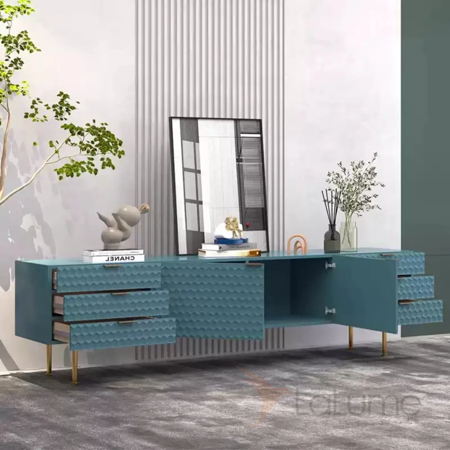 Современная ТВ-тумба из массива берёзы — это не только красивое, но и функциональное решение. Её текстура придаёт фасаду уникальный вид. Шесть ящиков и две распашные двери делают использование удобным. В ассортименте есть разные цвета и длины, что позволяет выбрать идеальный вариант для любого интерьера.