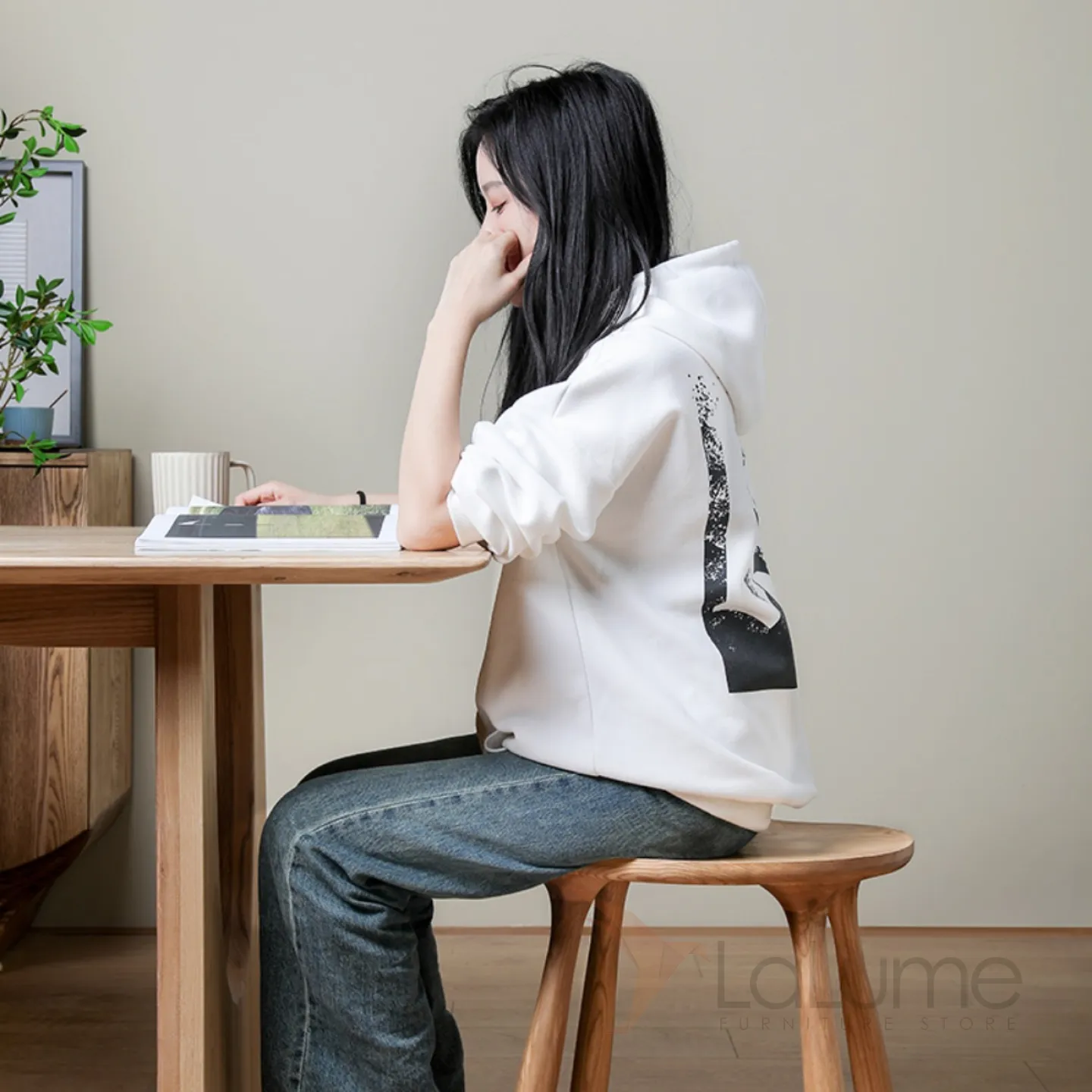 Эргономичный табурет с сиденьем из ясеня. Доступен в двух цветах.