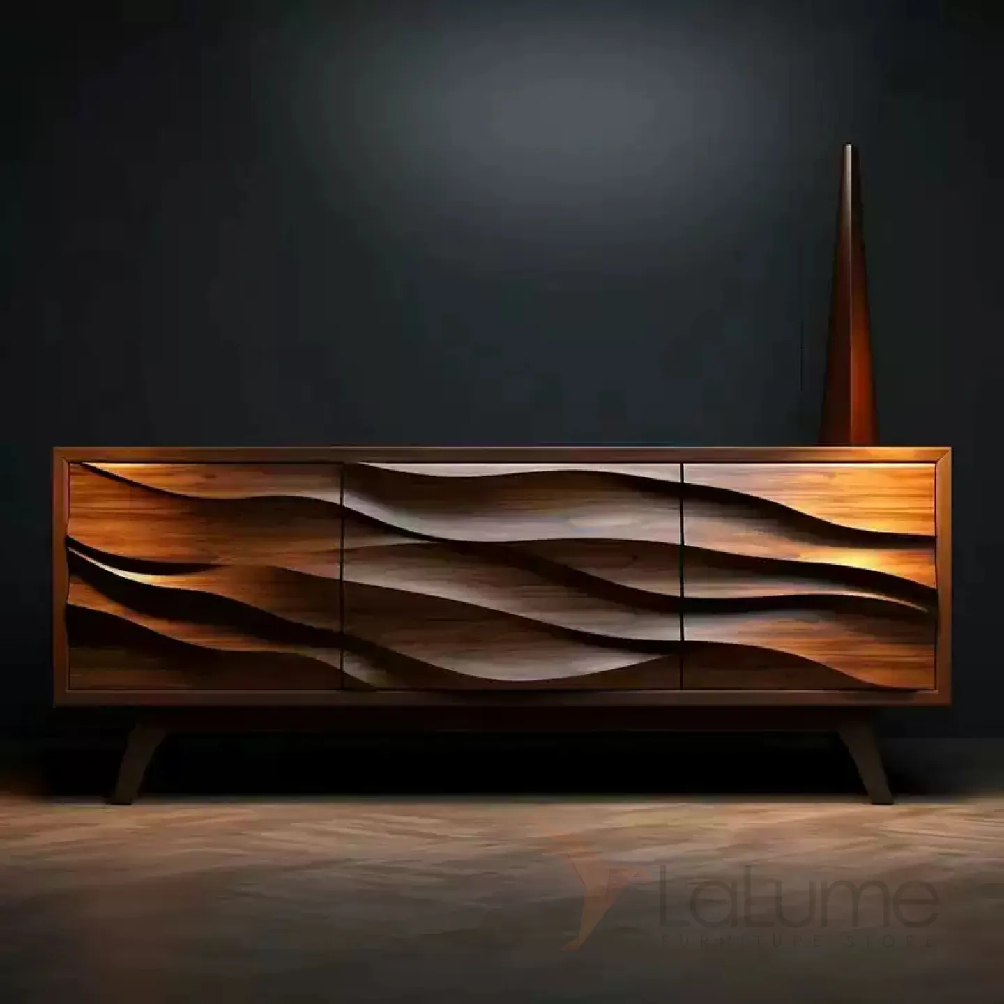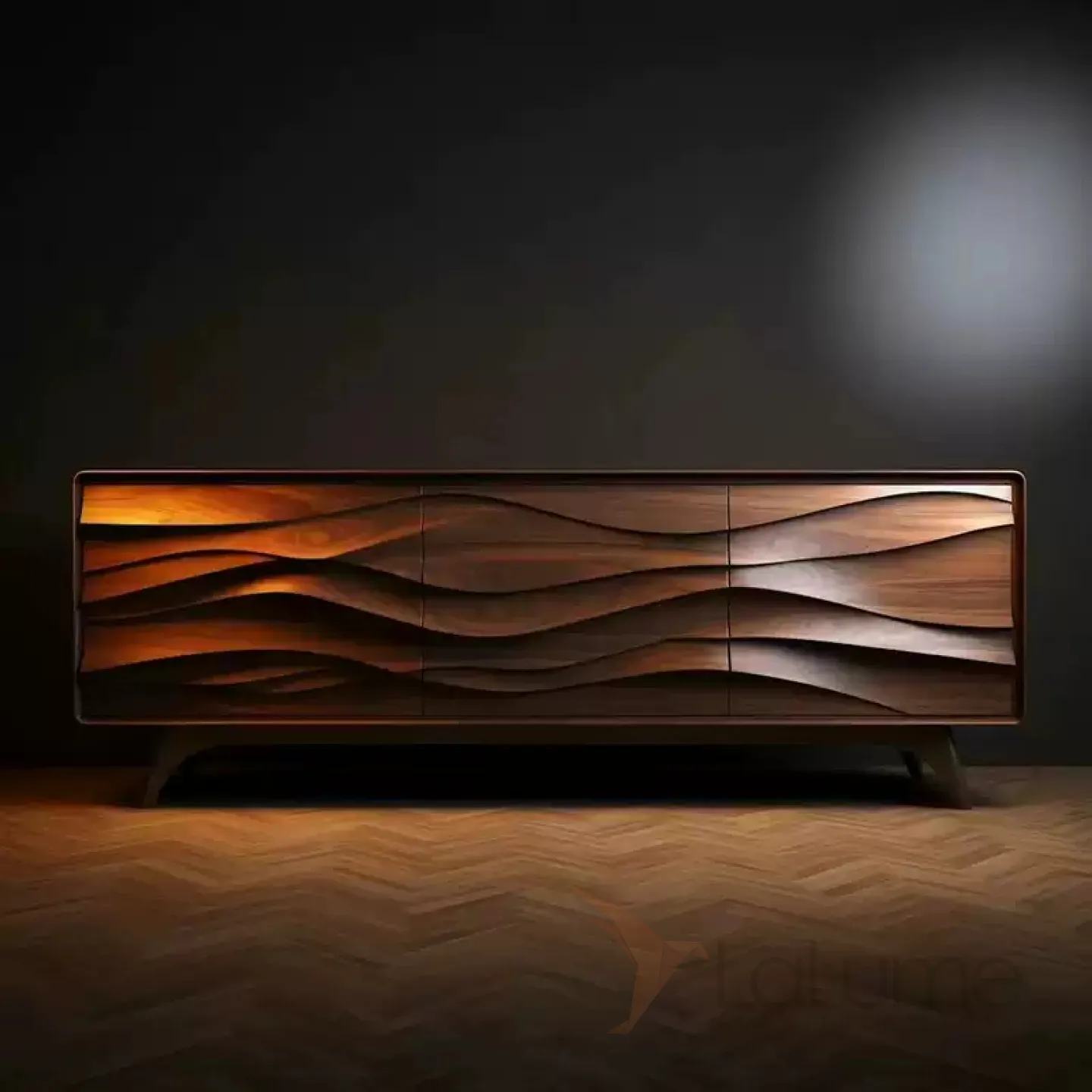 Тумба под телевизор, изготовленная вручную из древесины грецкого ореха, привлекает внимание необычным дизайном. Корпус выполнен из качественного материала, который сохраняет естественную текстуру древесины. Доступны несколько вариантов оформления.