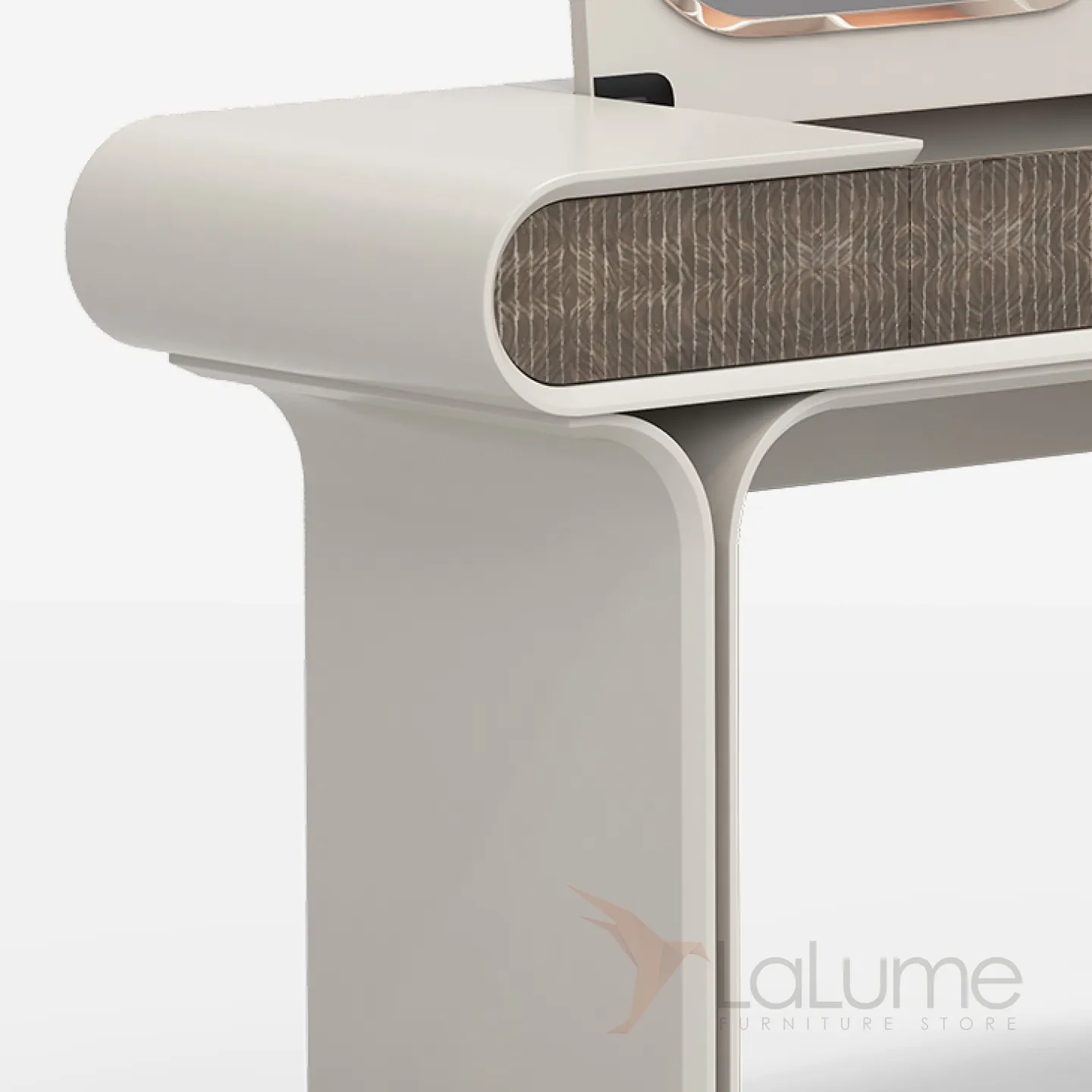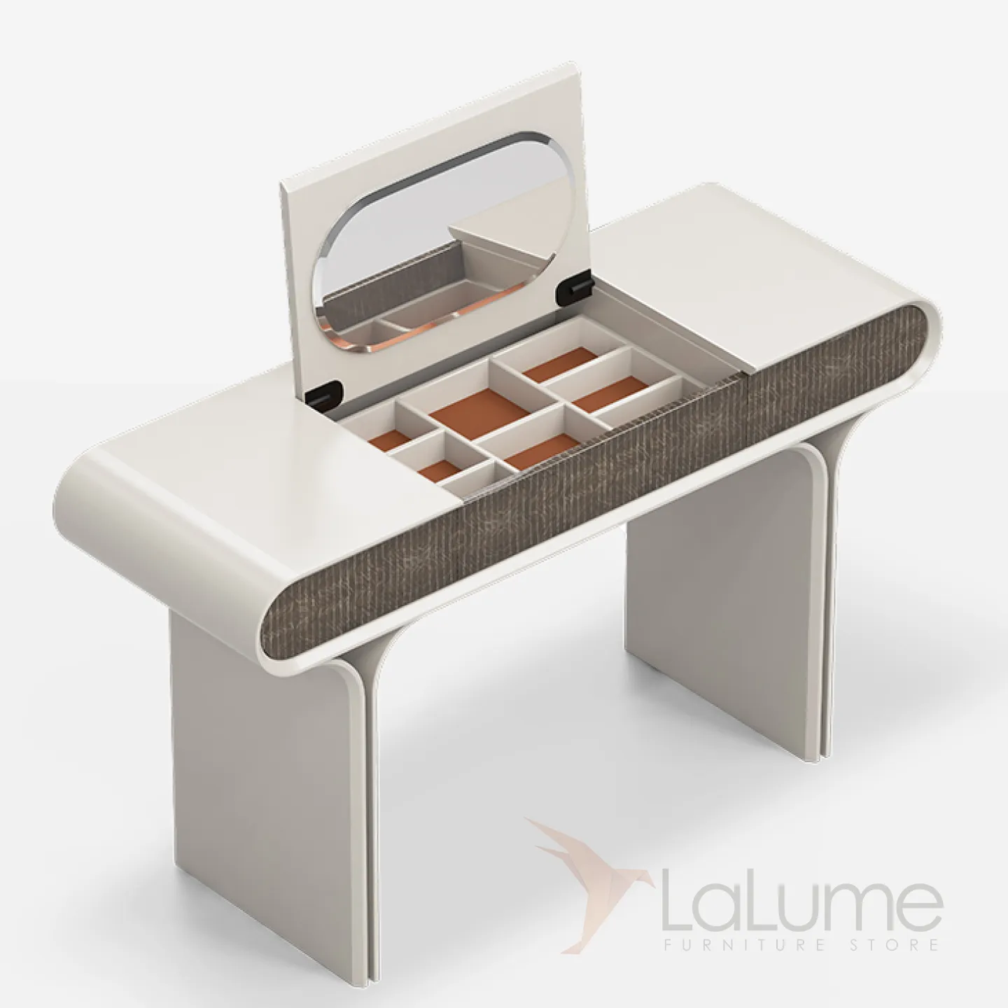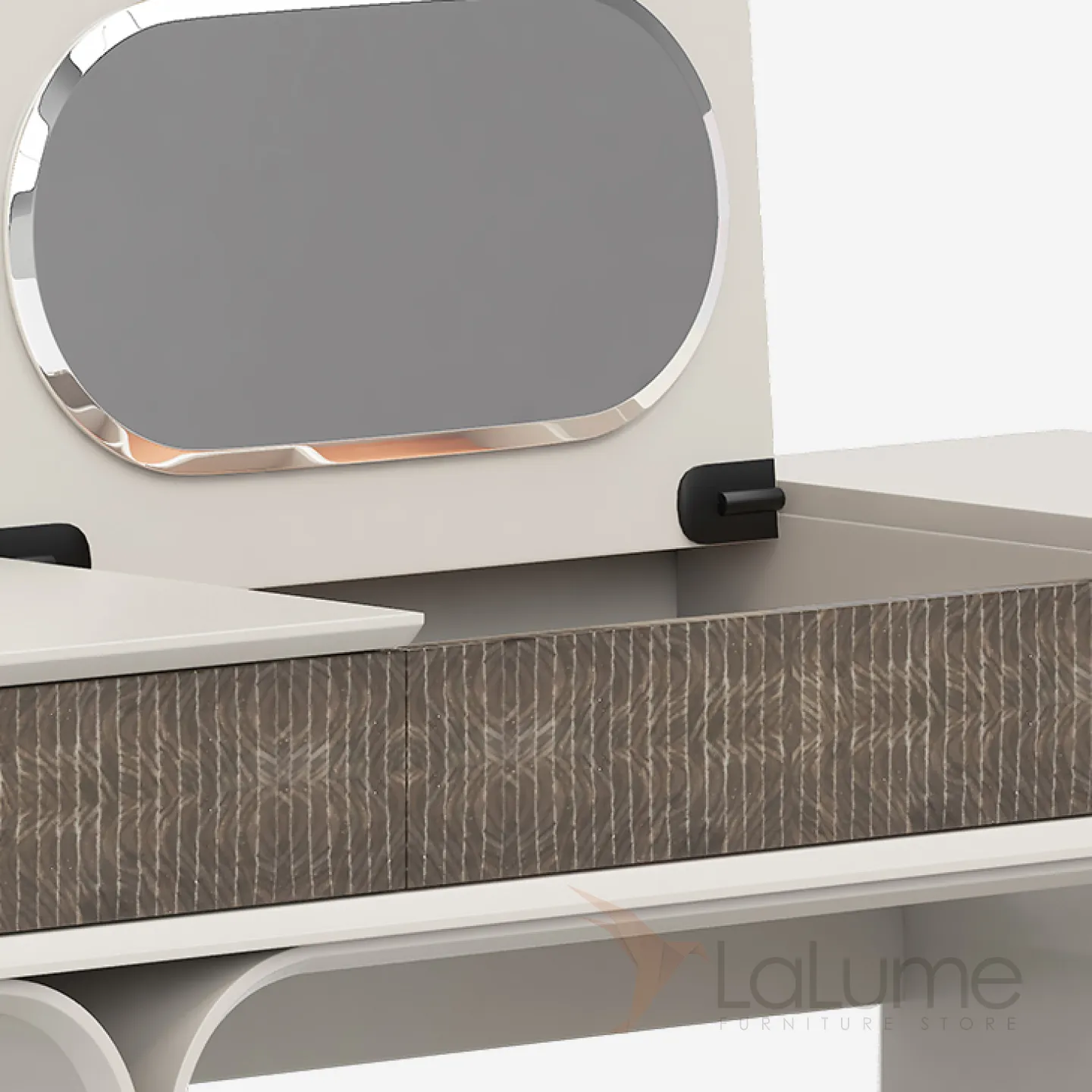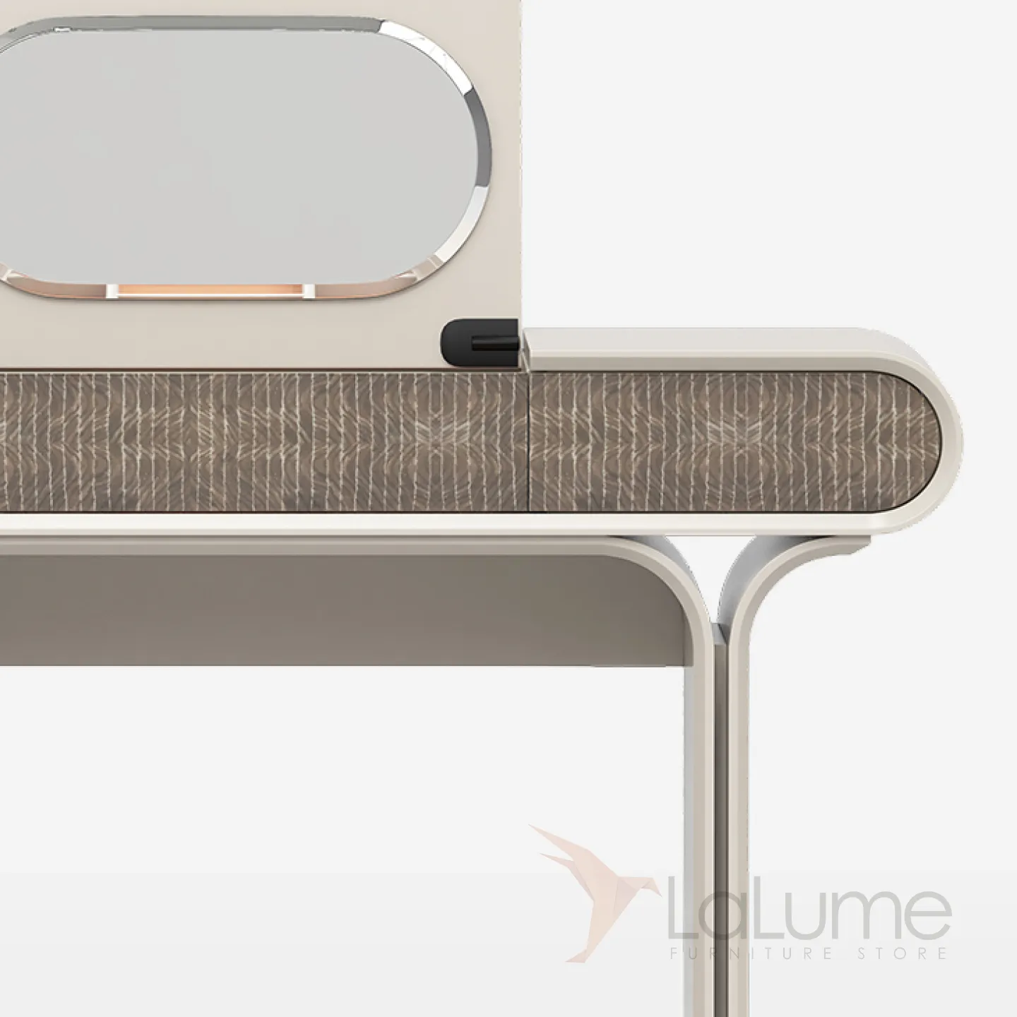 Элегантный туалетный столик с раскладным зеркалом, изготовленный из нержавеющей стали и массива бука, украшен декоративным покрытием. Изящные линии и продуманная конструкция делают его украшением интерьера. Это идеальный выбор для женщин, ценящих стиль и функциональность.