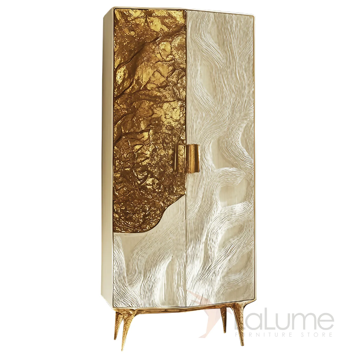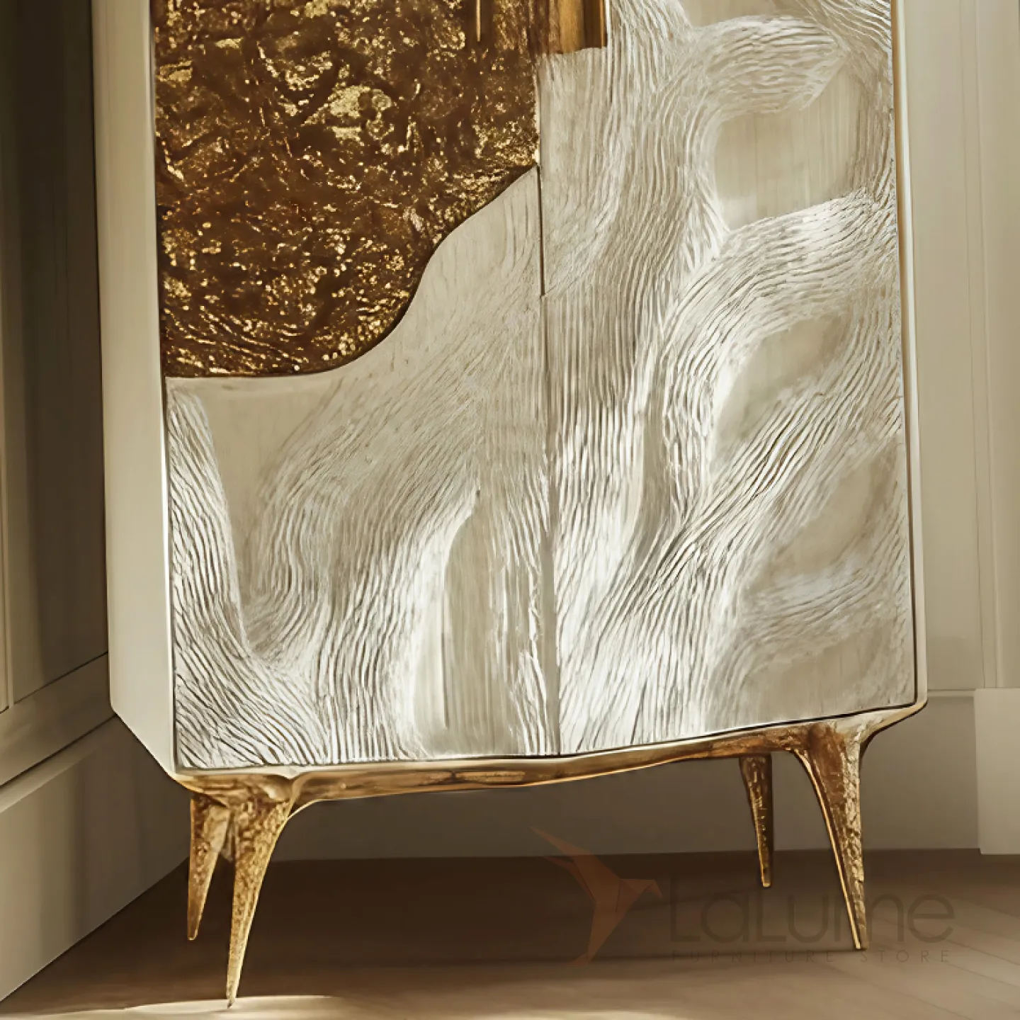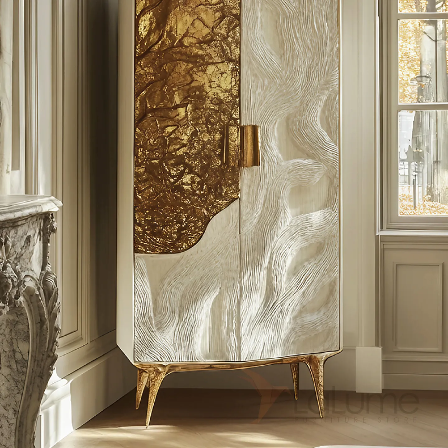 Изысканный винный шкаф из дерева и металла ASA, который поражает своей элегантностью и изысканностью. В его дизайне гармонично сочетаются белый и золотой цвета, а фактура поверхности придаёт ему особый шарм.