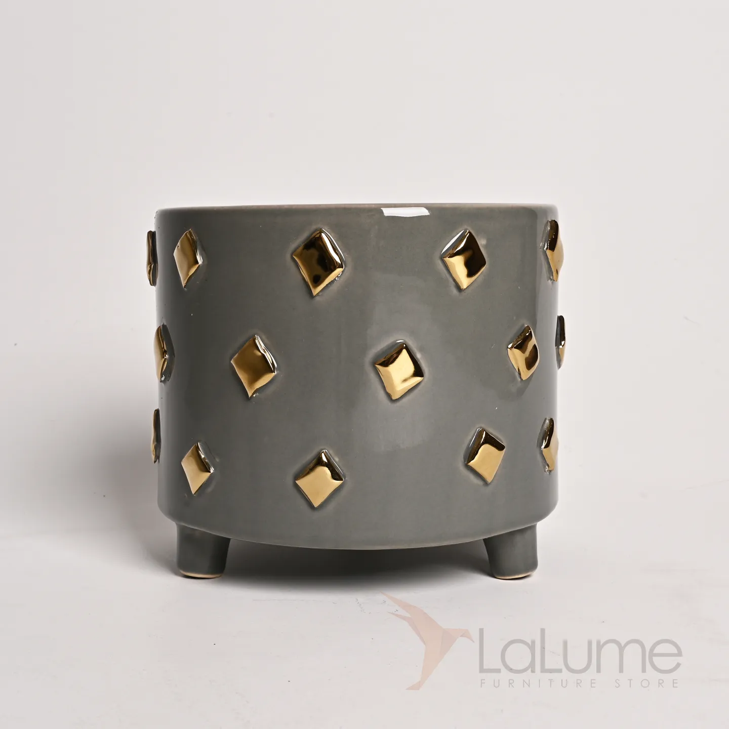 Серая и золотистая керамическая чаша LaLume DK_FA-D2048A