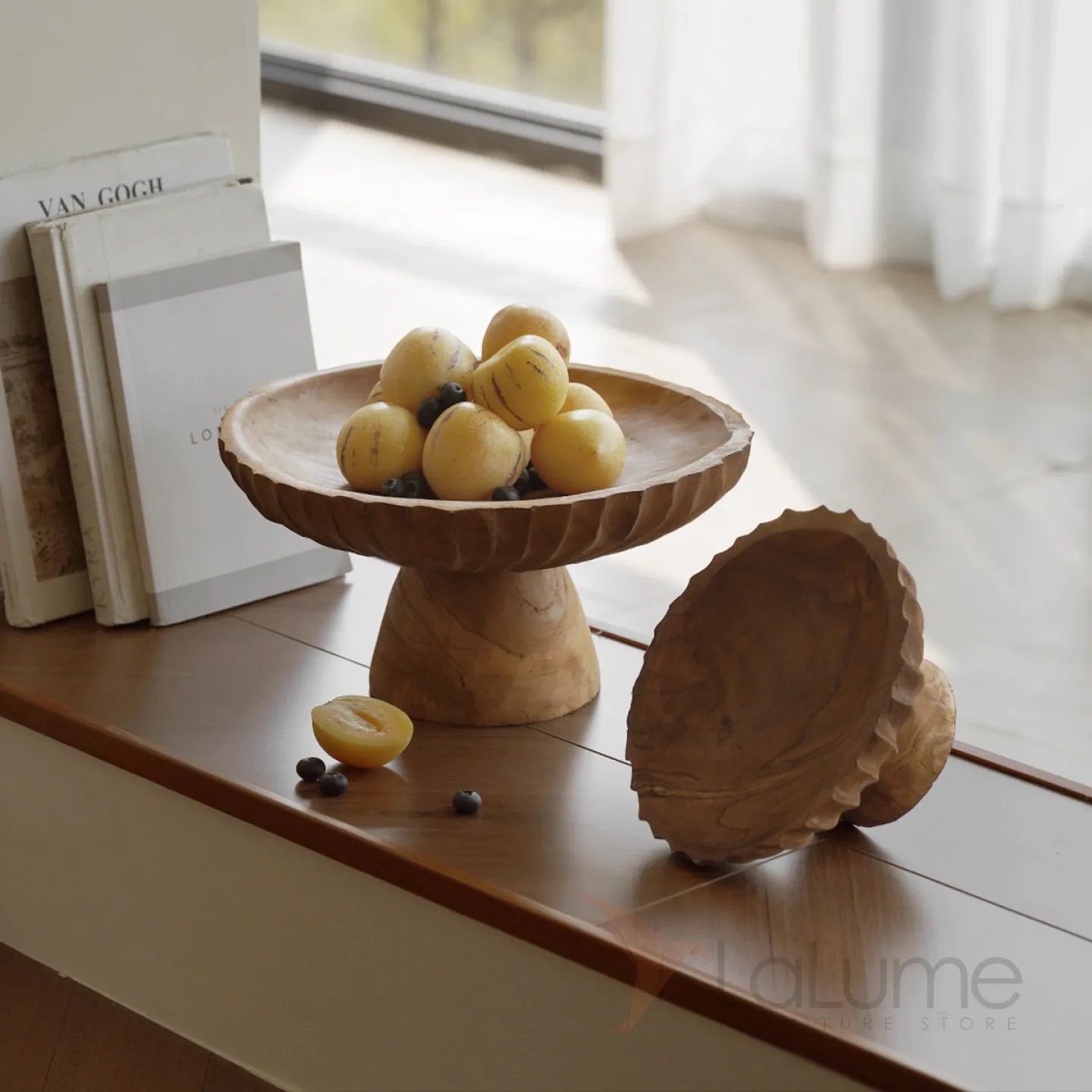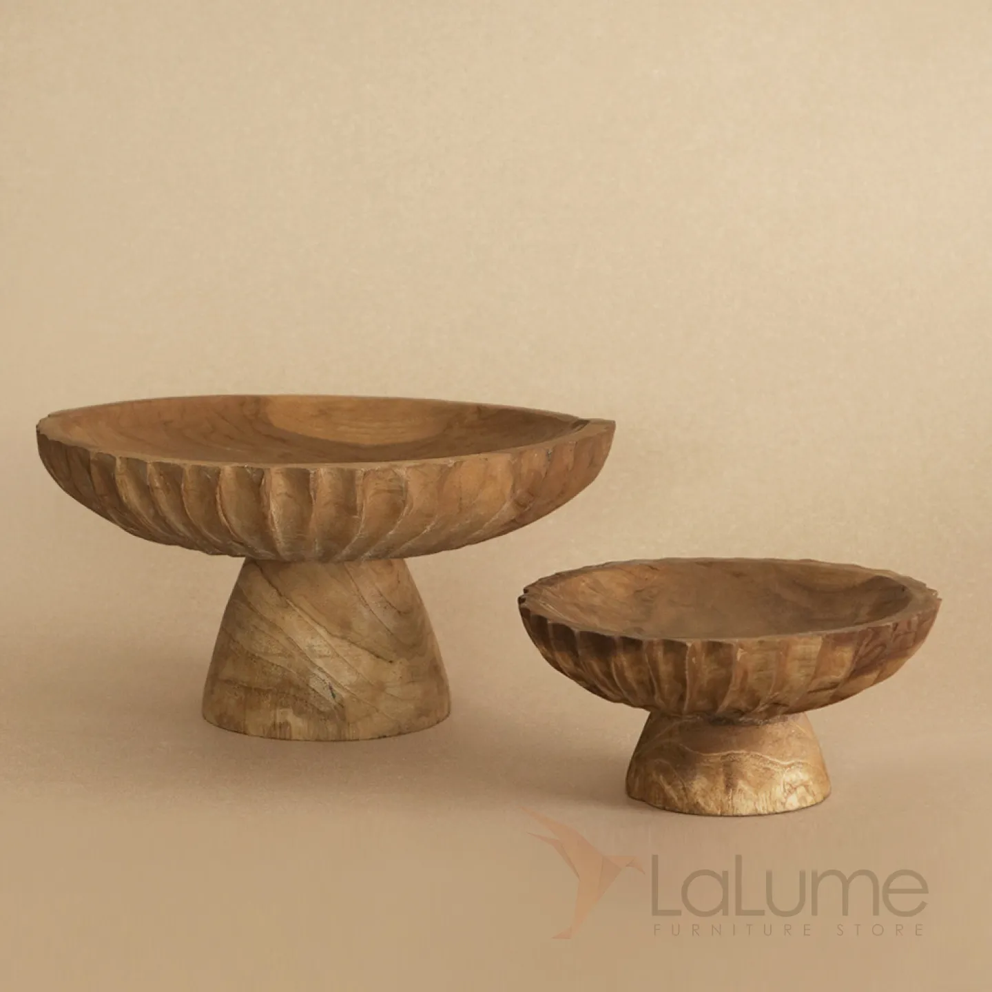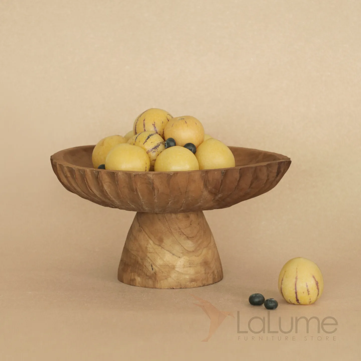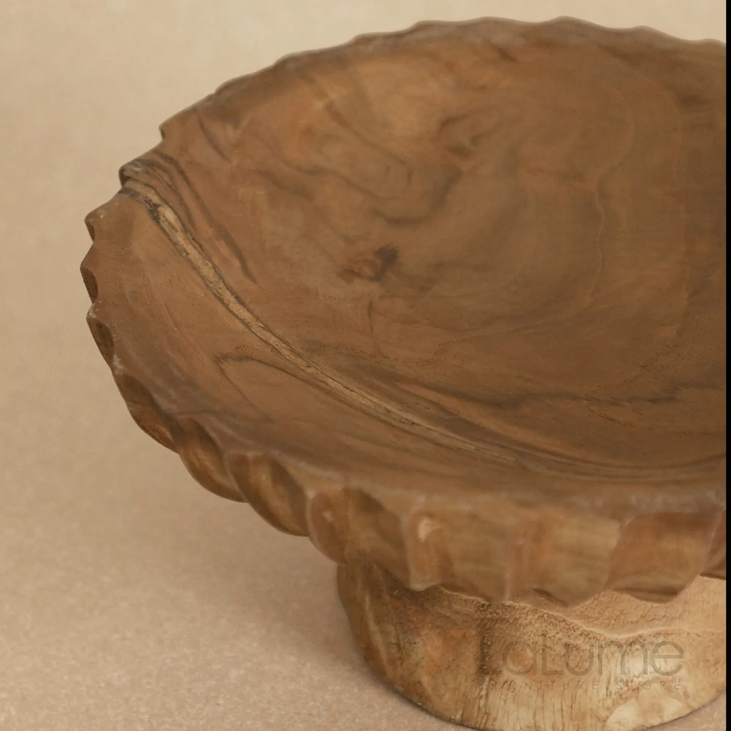 Резная фруктовница из цельного дерева в двух размерах станет украшением интерьера и придаст ему особый шарм.