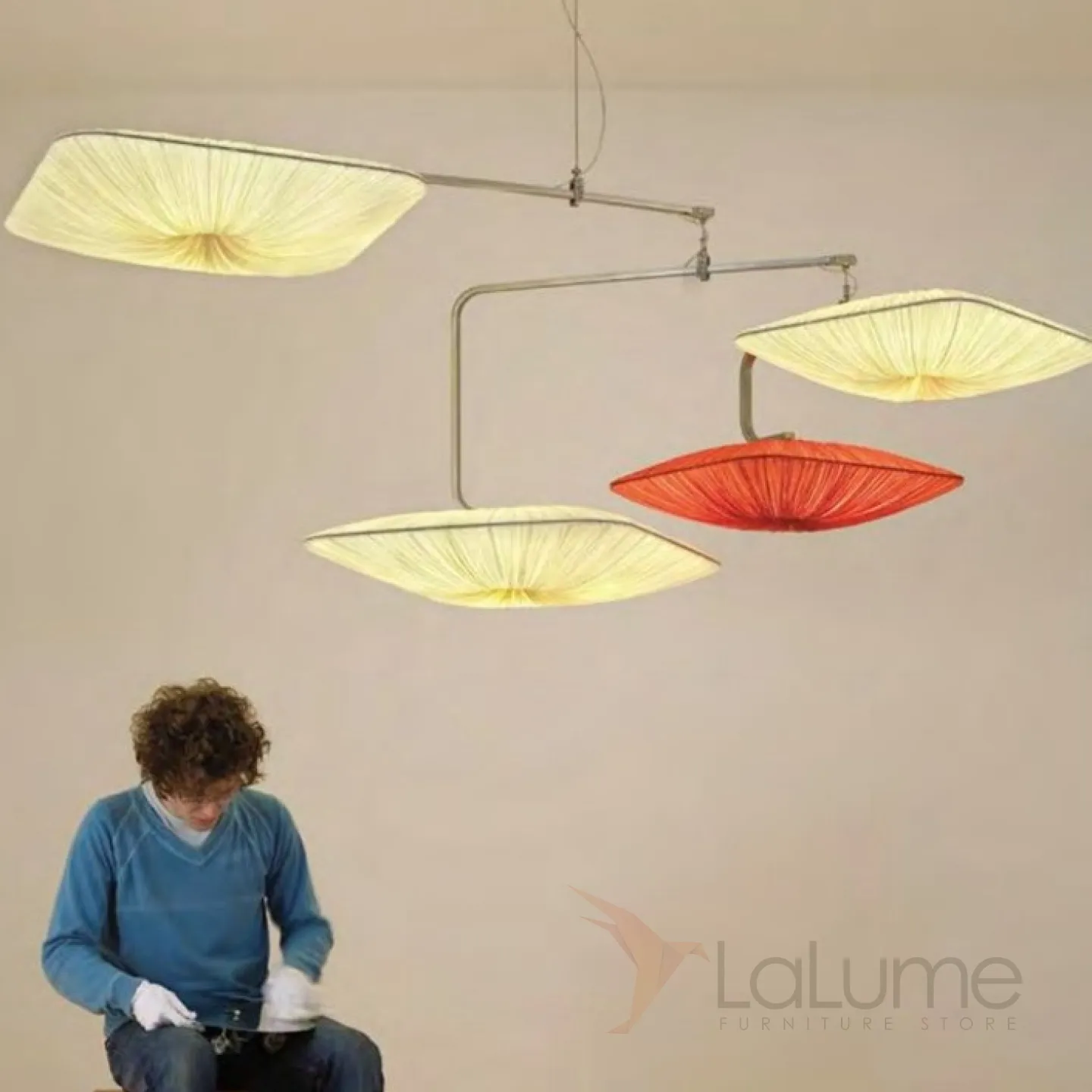 в скандинавском стиле. Ткань для воздушных квадратных плафонов выполнена