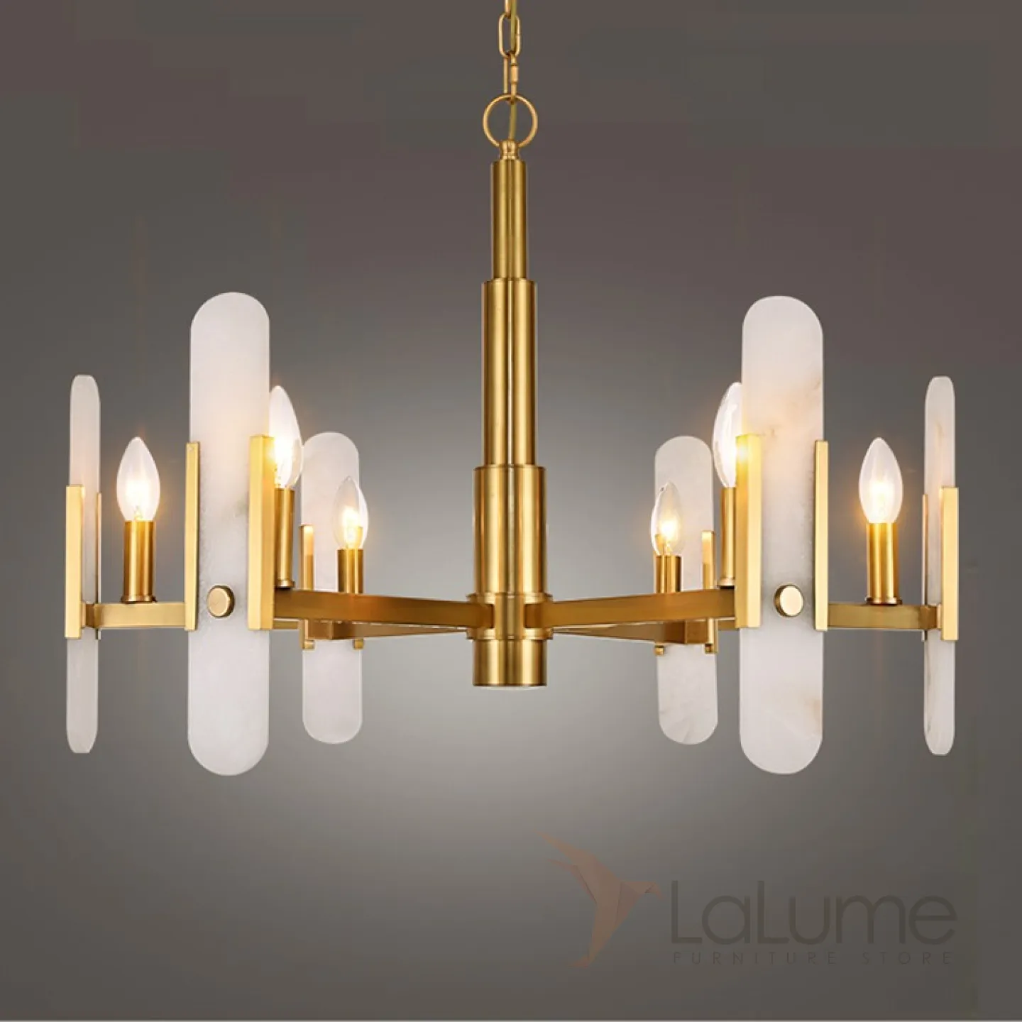 Люстра в стиле американского минимализма с декором из мраморных пластин THEME