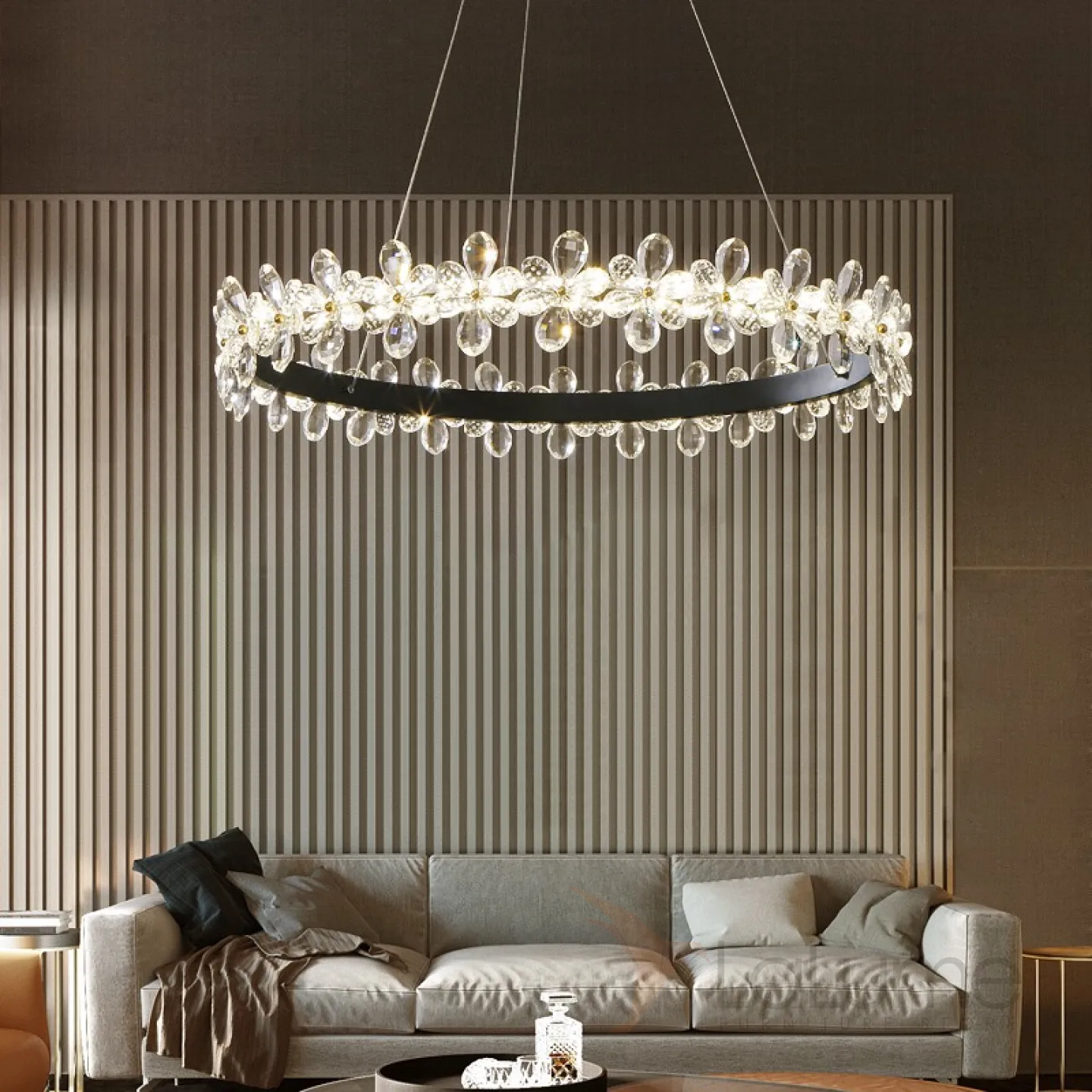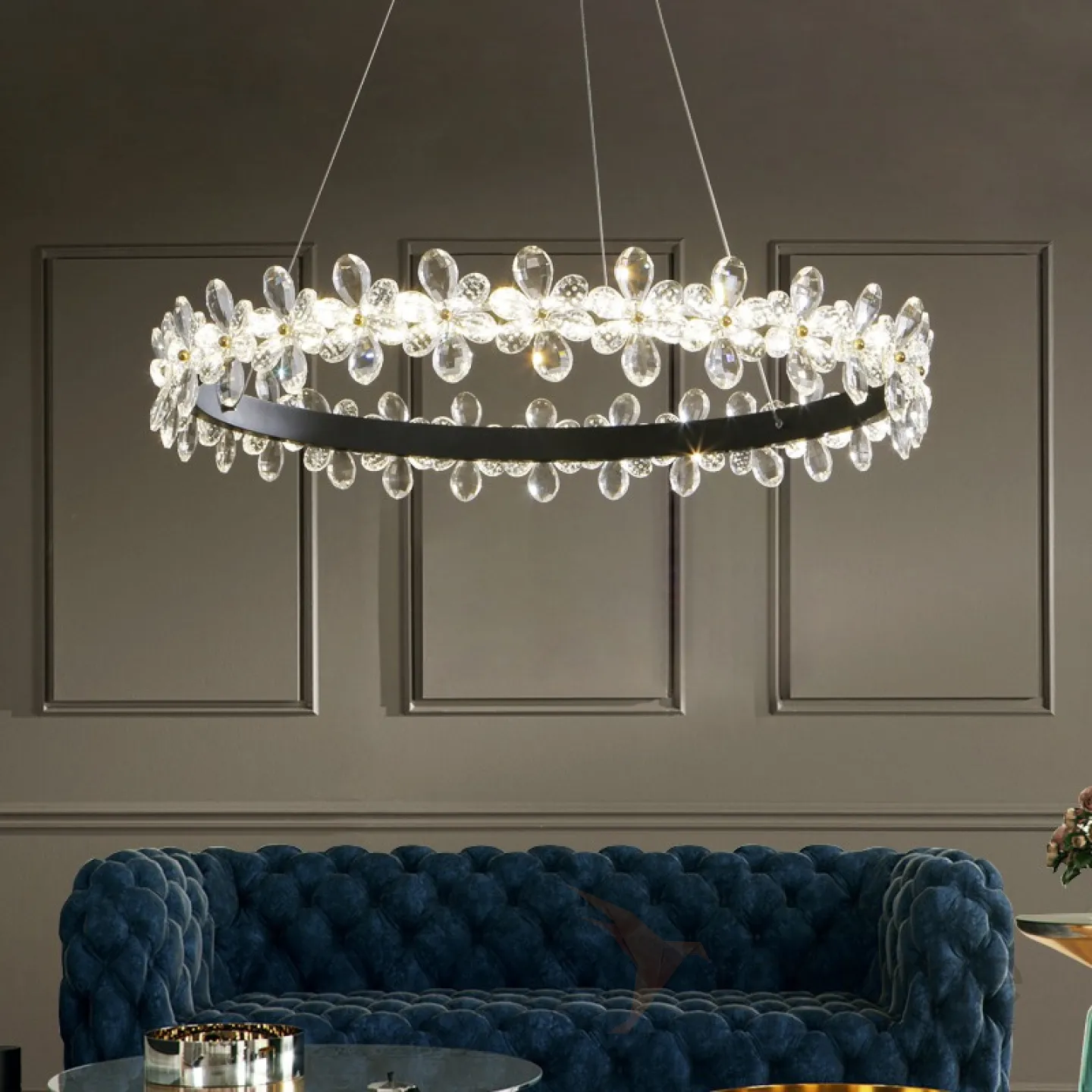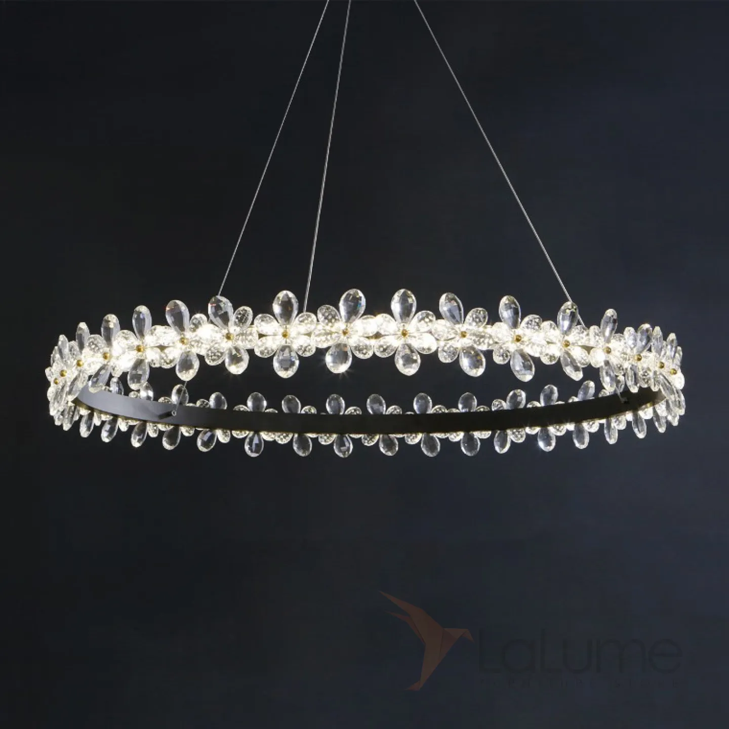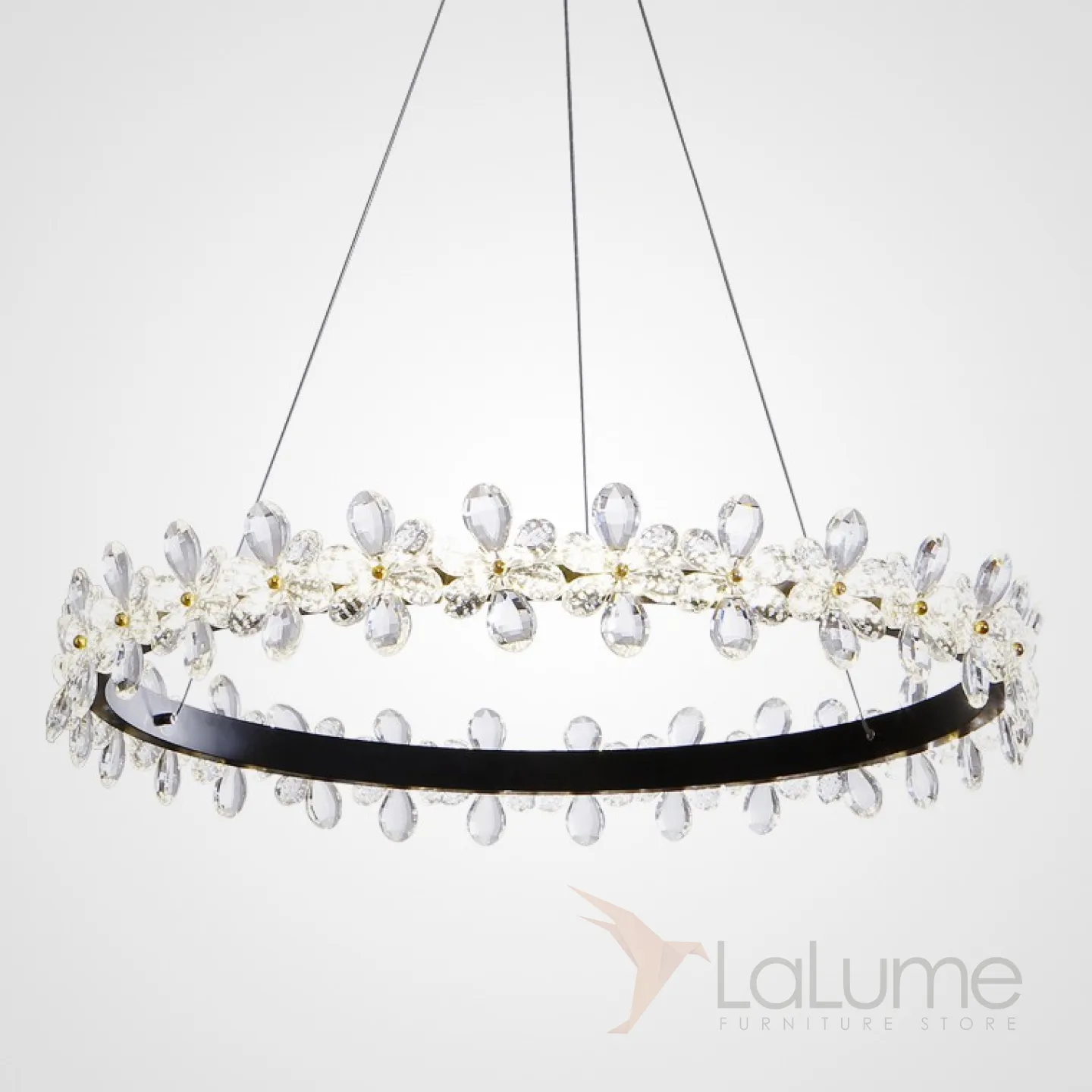 Светодиодная люстра с цветочным декором из граненых стеклянных бусин на кольцевом каркасе FLORETTA