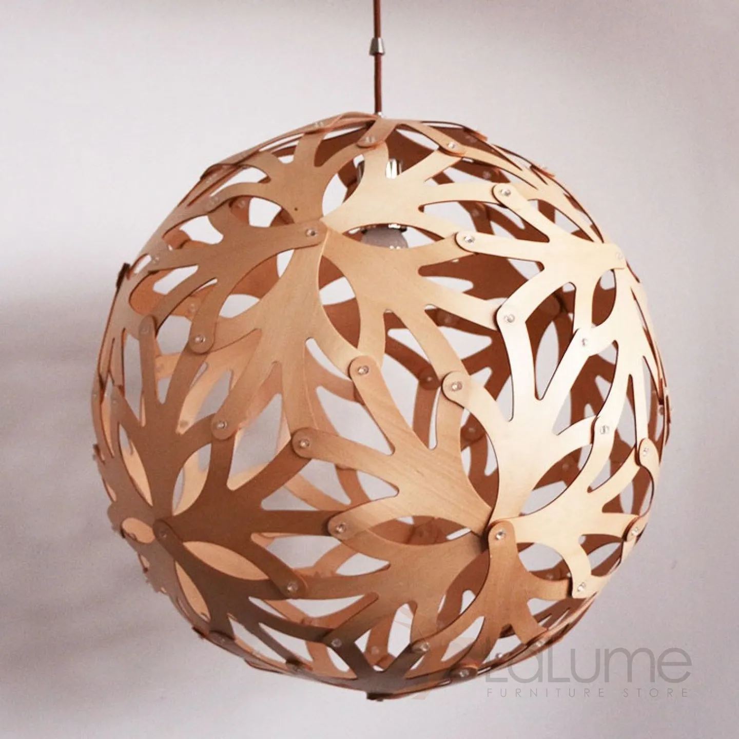 Деревянный подвесной светильник в виде ажурного шара RISTA