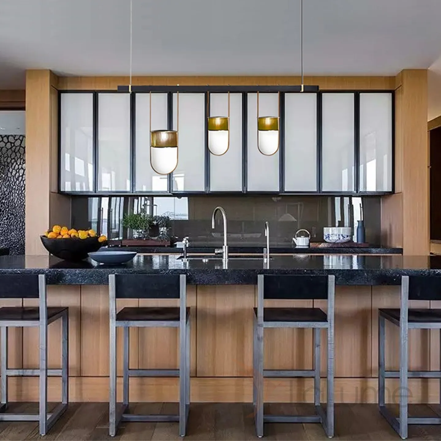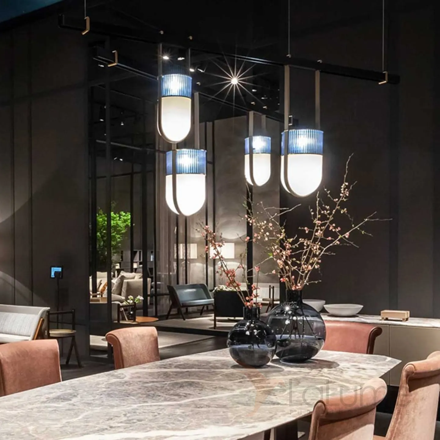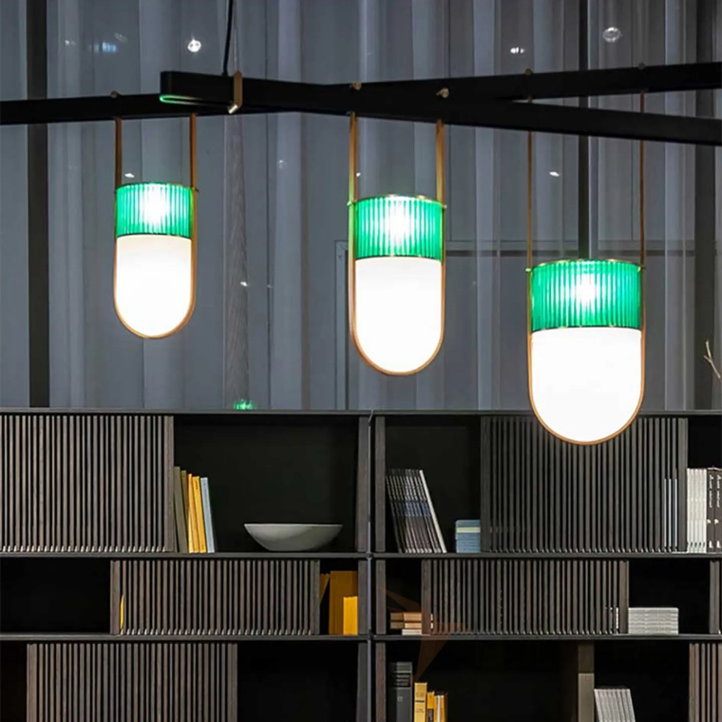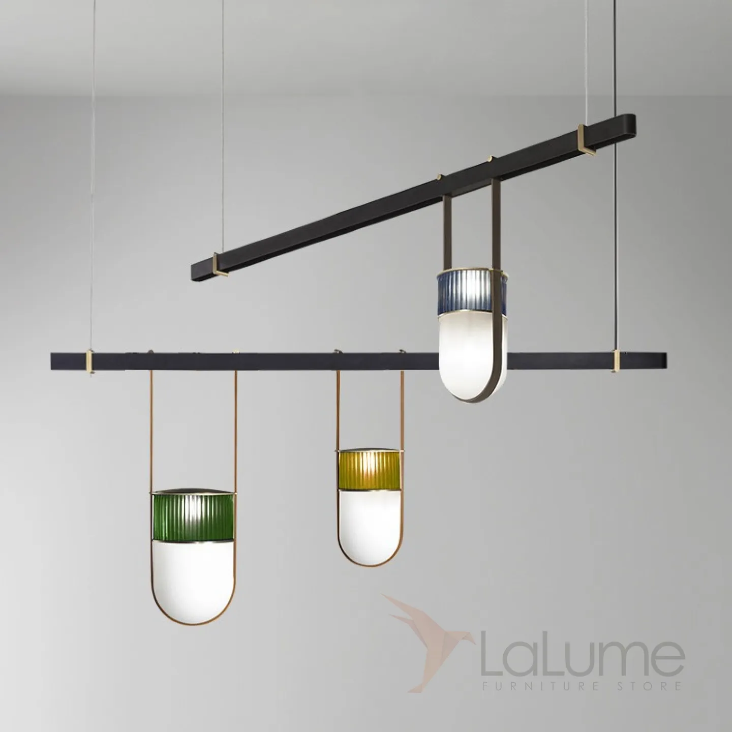 Дизайнерский реечный светильник со стеклянными подвесными плафонами FARG
