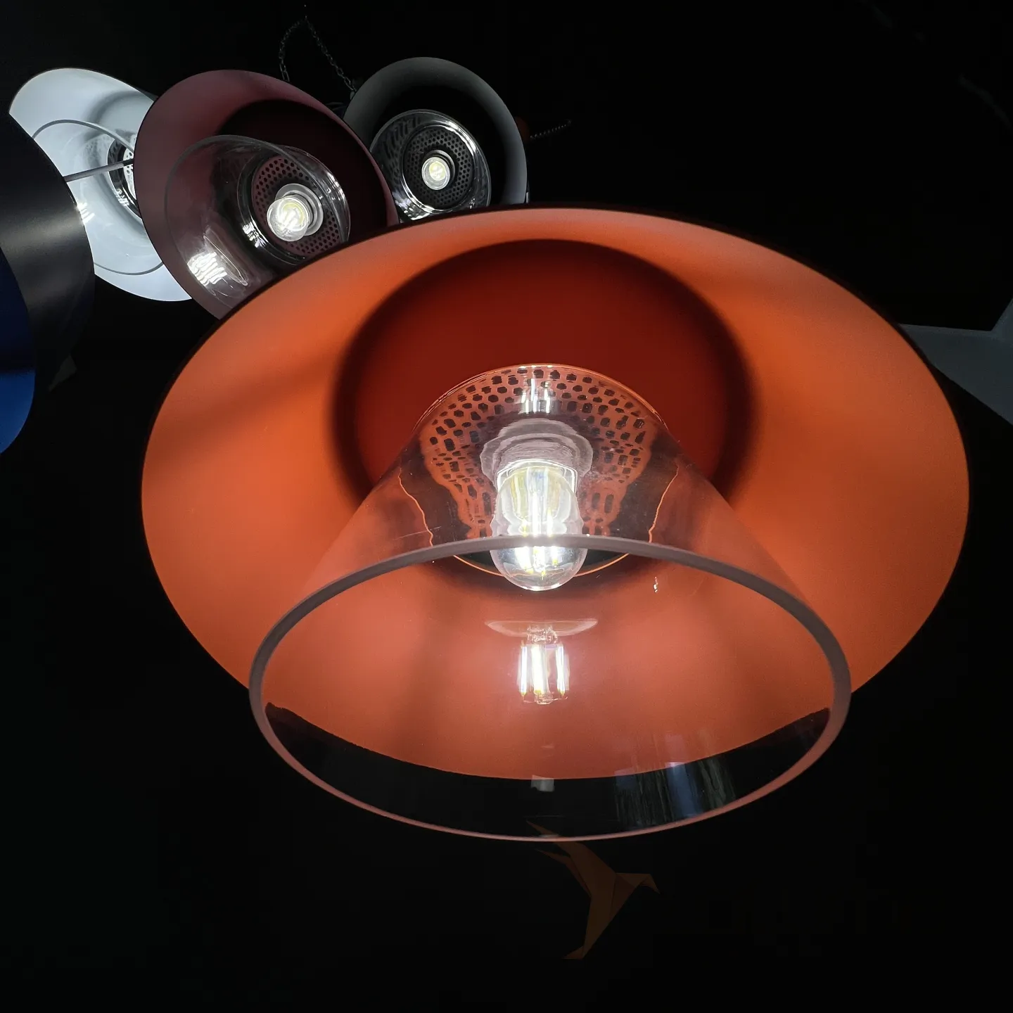 Ультра модный светильник в скандинавском стиле различных оттенков, а также белого или черного цветов с прозрачной внутренней стеклянной вставкой и пластиной с сеткой в форме соты.