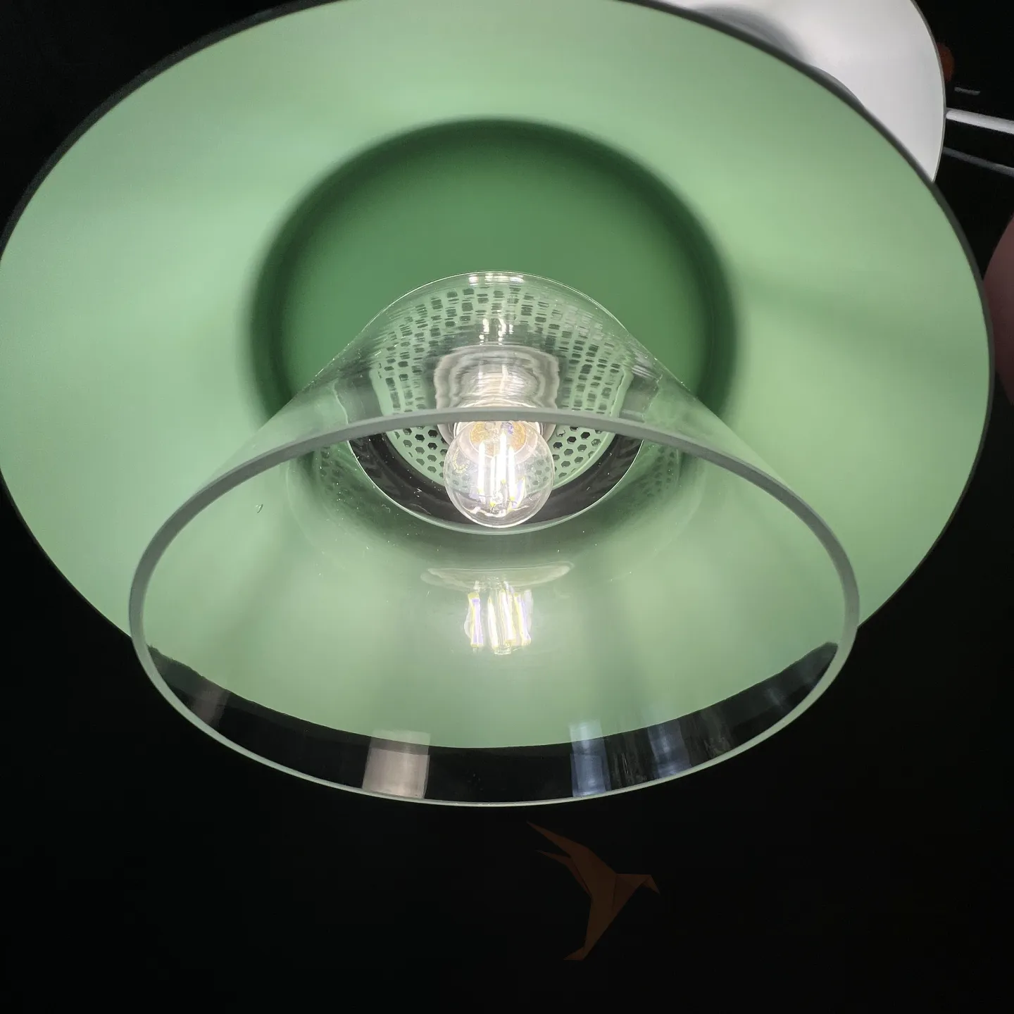 Ультра модный светильник в скандинавском стиле различных оттенков, а также белого или черного цветов с прозрачной внутренней стеклянной вставкой и пластиной с сеткой в форме соты.