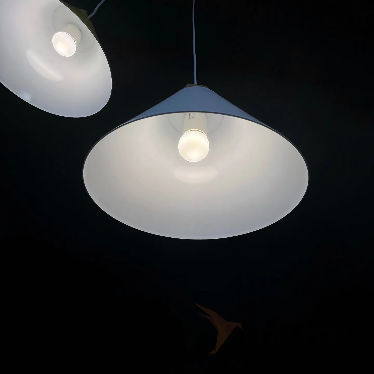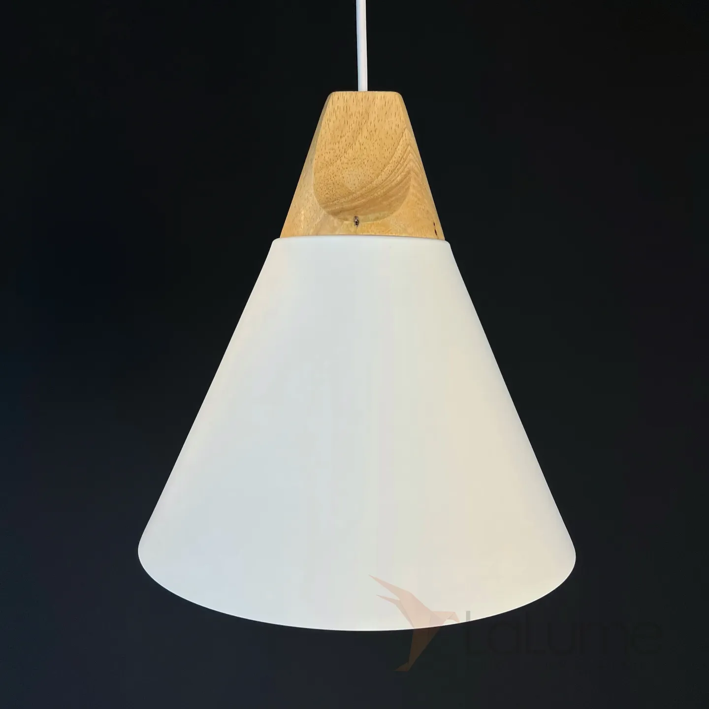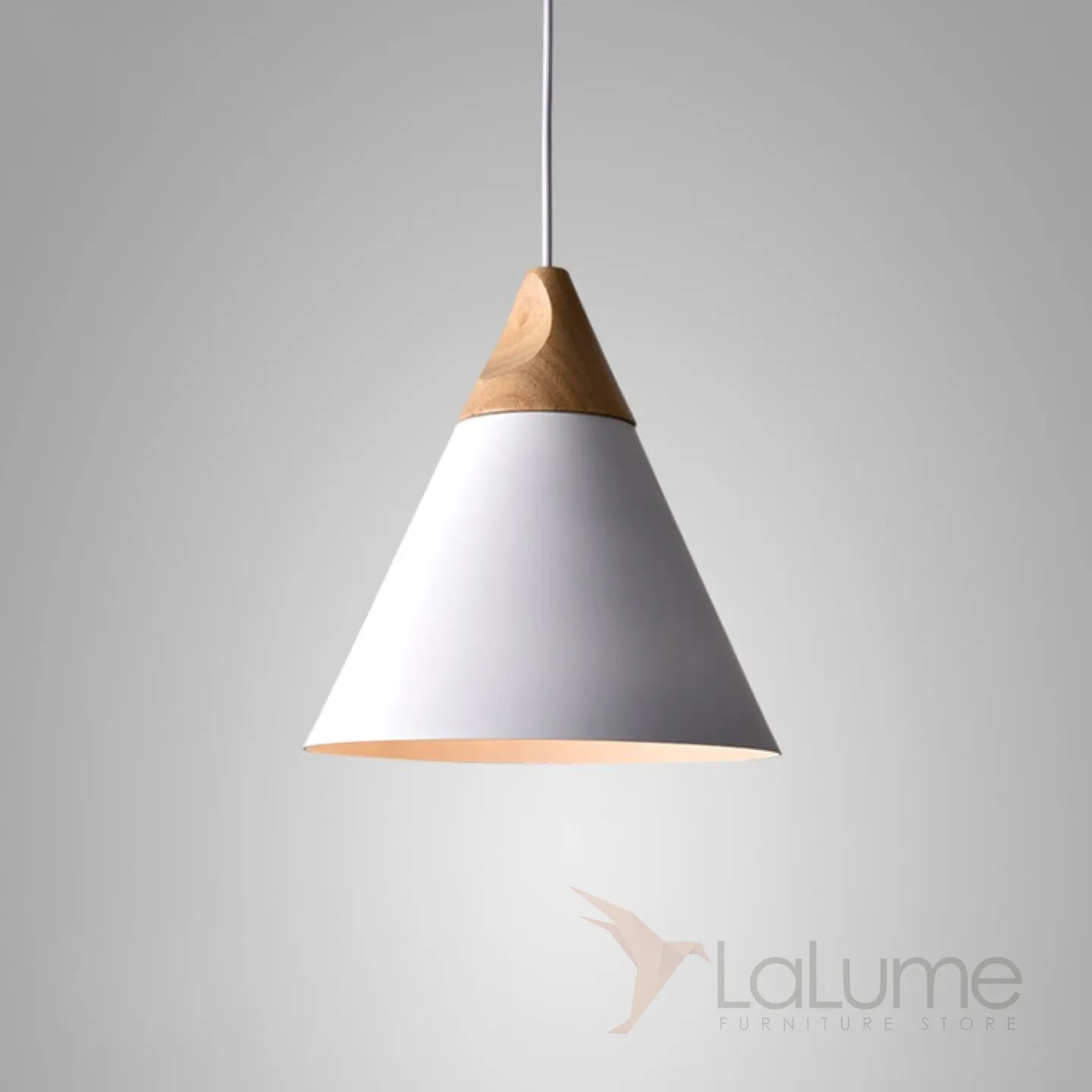 Серия подвесных светильников в скандинавском стиле с металлическими конусными абажурами и деревянным клипом. Прекрасно комбинируются в группы, как разноуровневого, так и линейного размещения на общем потолочном диске или плоскости.