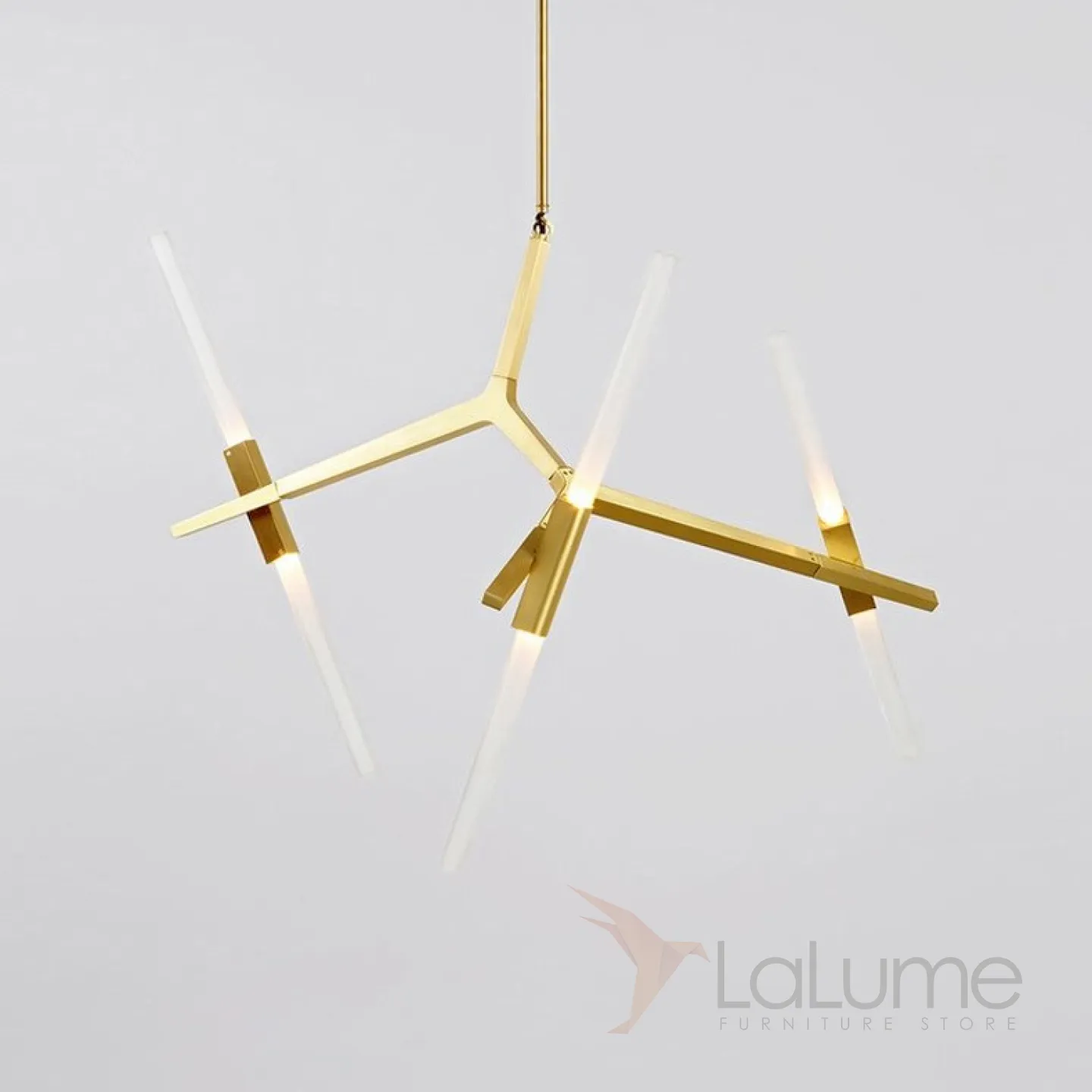 Одна из самых востребованных дизайнерами люстр молекулярной формы, с огромным спектром конфигураций: от 6-х до 20 трубчатых плафонов на каркасе латунного или черного цветов.