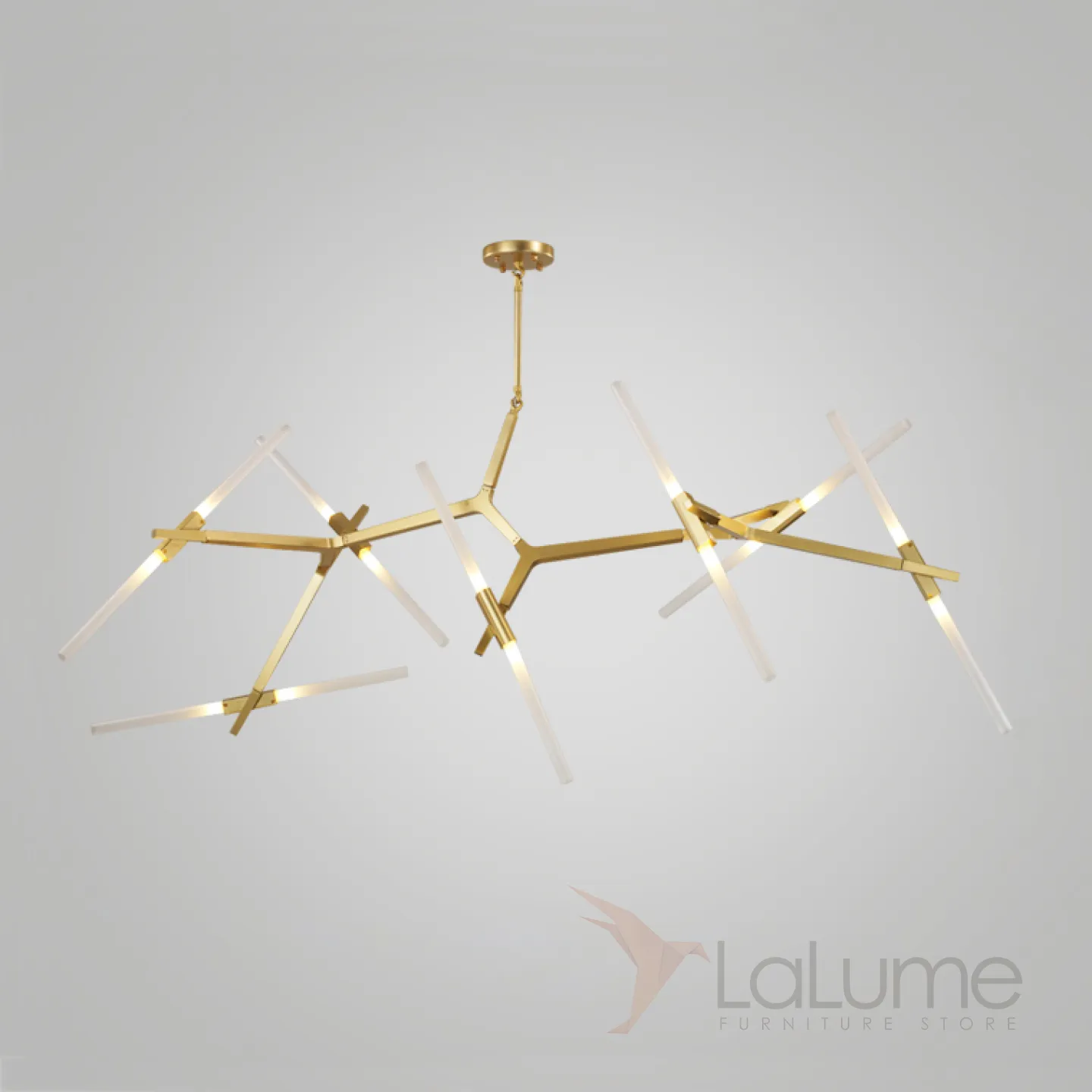 Одна из самых востребованных дизайнерами люстр молекулярной формы, с огромным спектром конфигураций: от 6-х до 20 трубчатых плафонов на каркасе латунного или черного цветов.