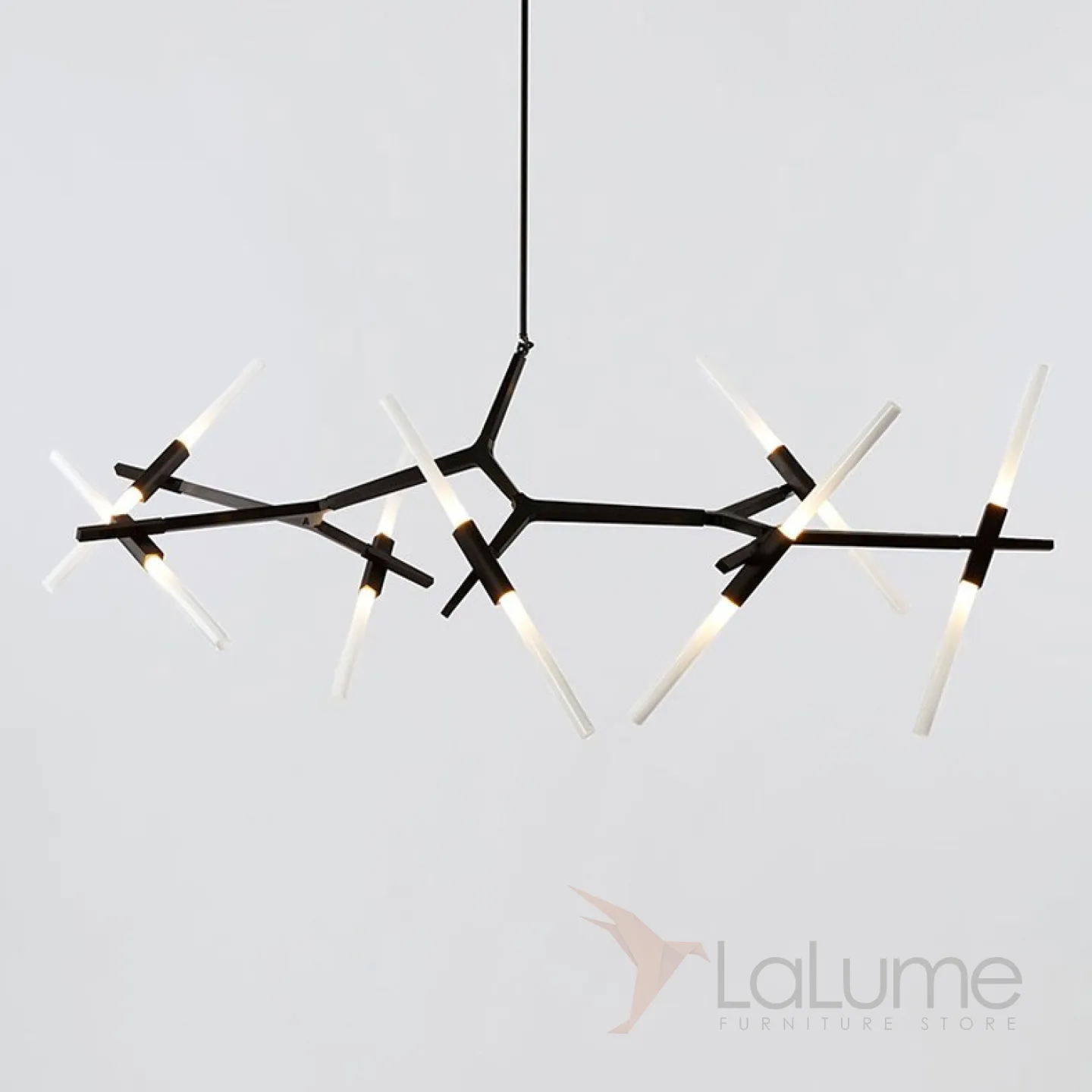 Одна из самых востребованных дизайнерами люстр молекулярной формы, с огромным спектром конфигураций: от 6-х до 20 трубчатых плафонов на каркасе латунного или черного цветов.