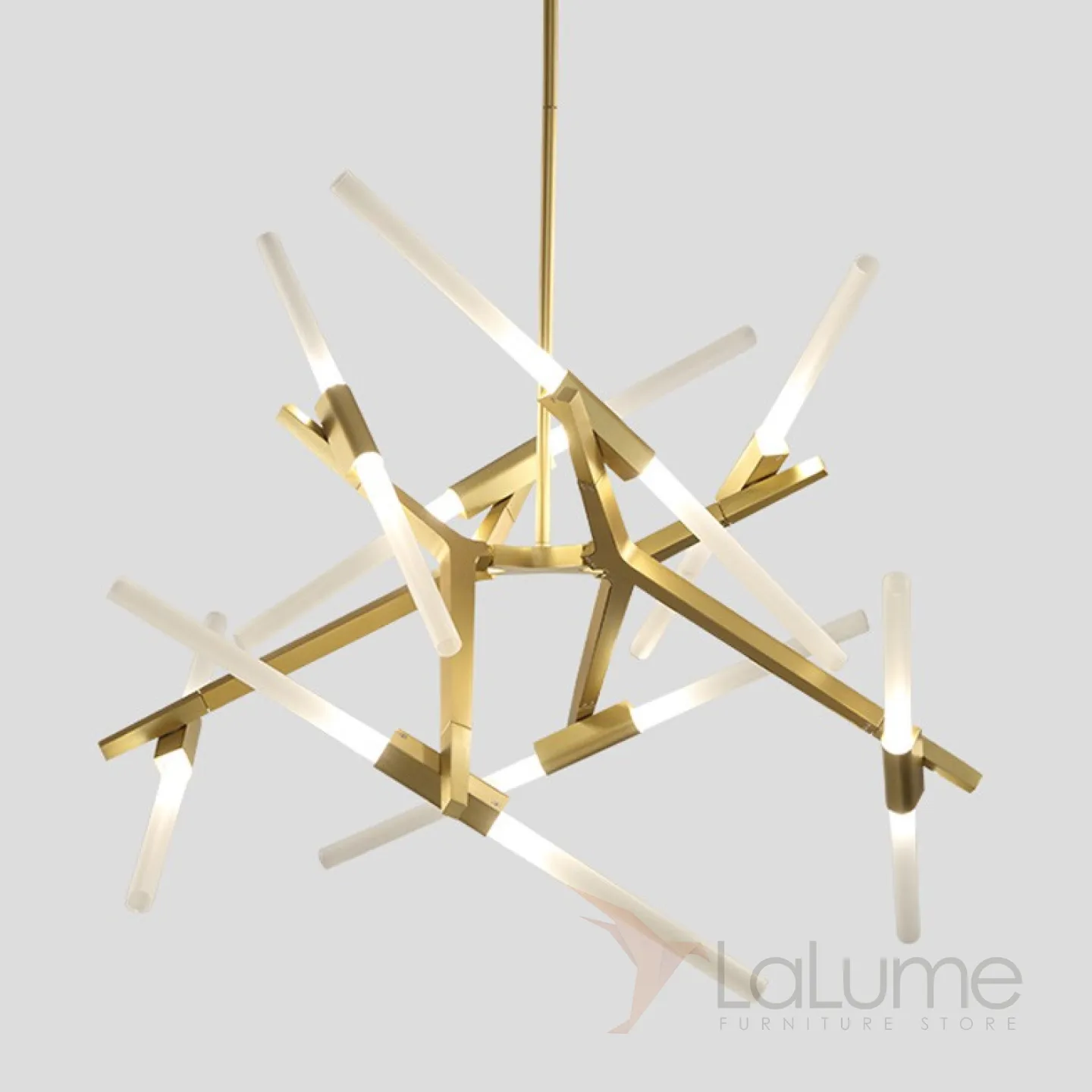 Одна из самых востребованных дизайнерами люстр молекулярной формы, с огромным спектром конфигураций: от 6-х до 20 трубчатых плафонов на каркасе латунного или черного цветов.