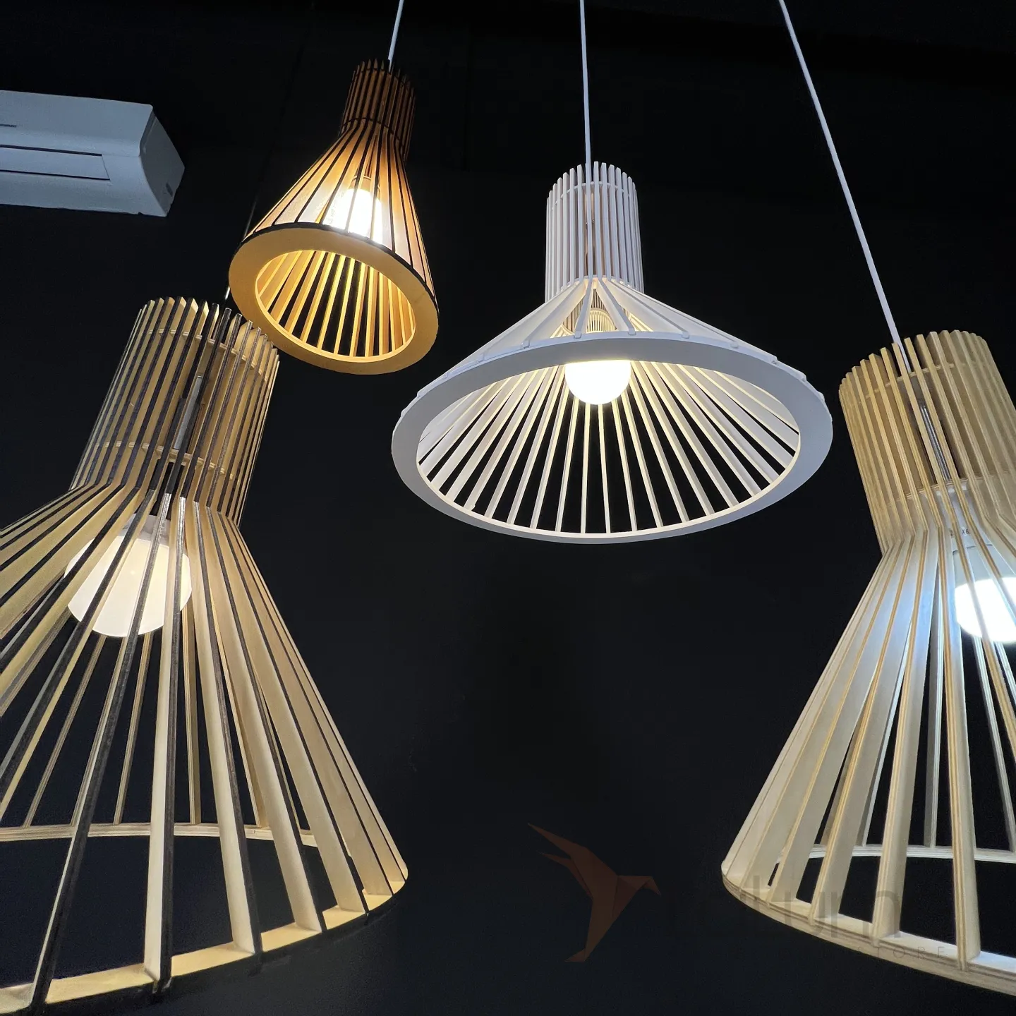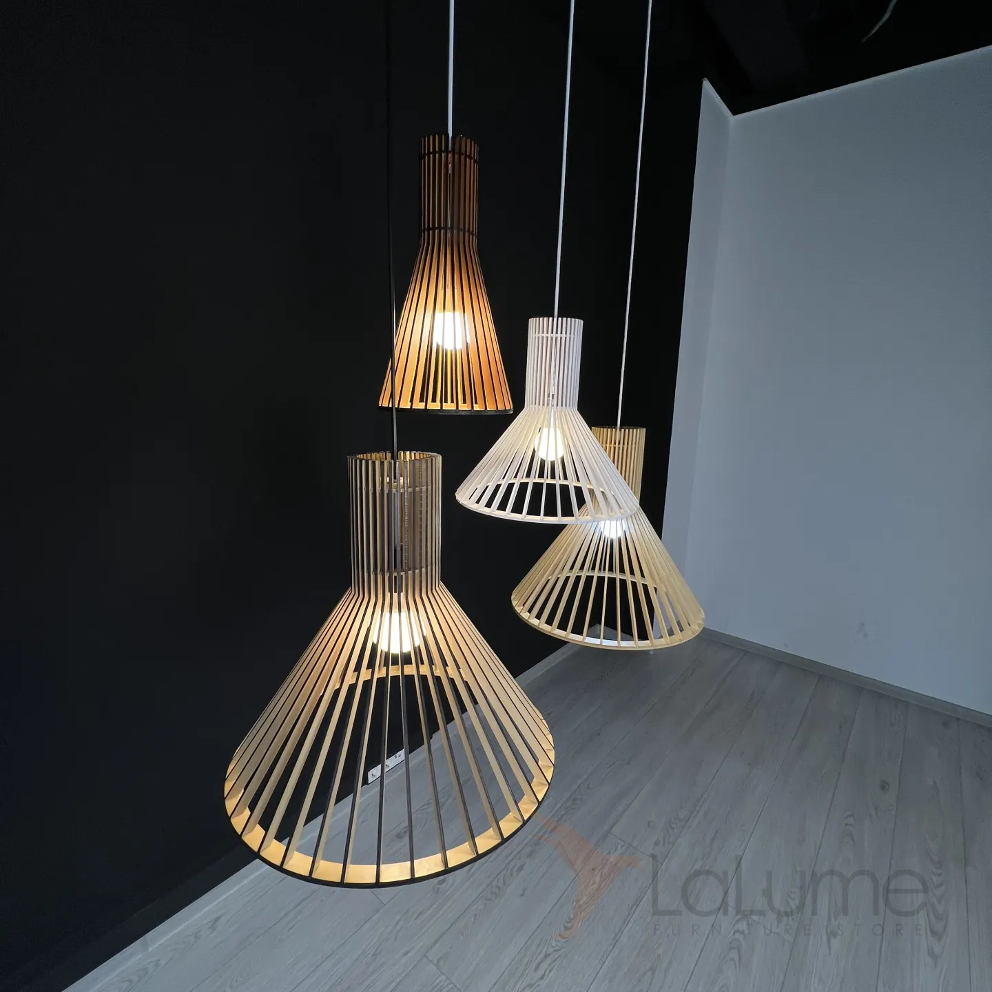 Светильник в эко-стиле из деревянных ламелей.