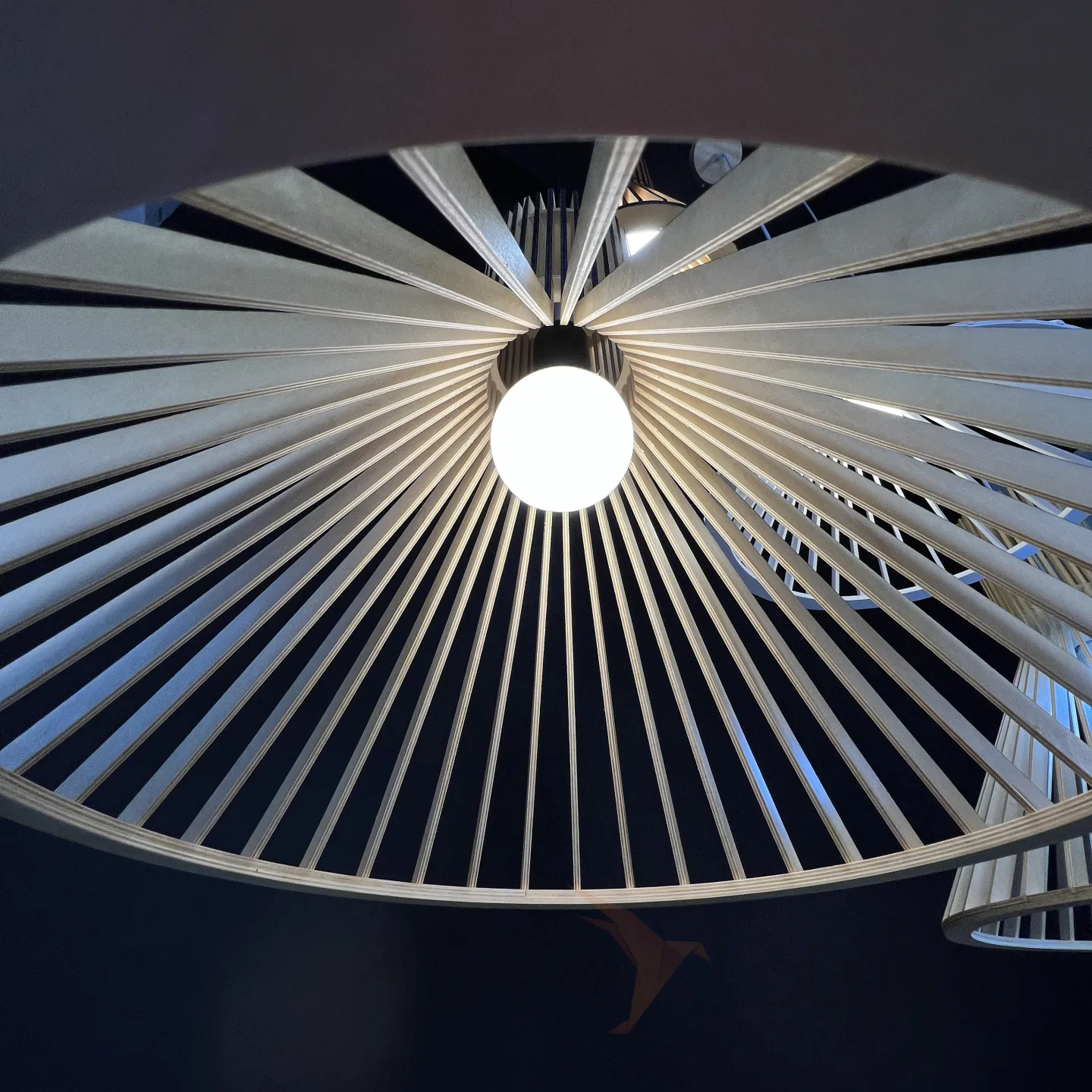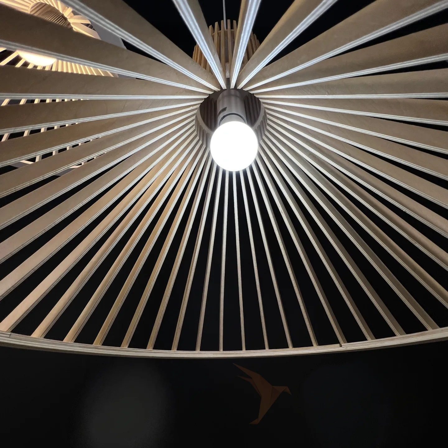 Светильник в эко-стиле из деревянных ламелей.