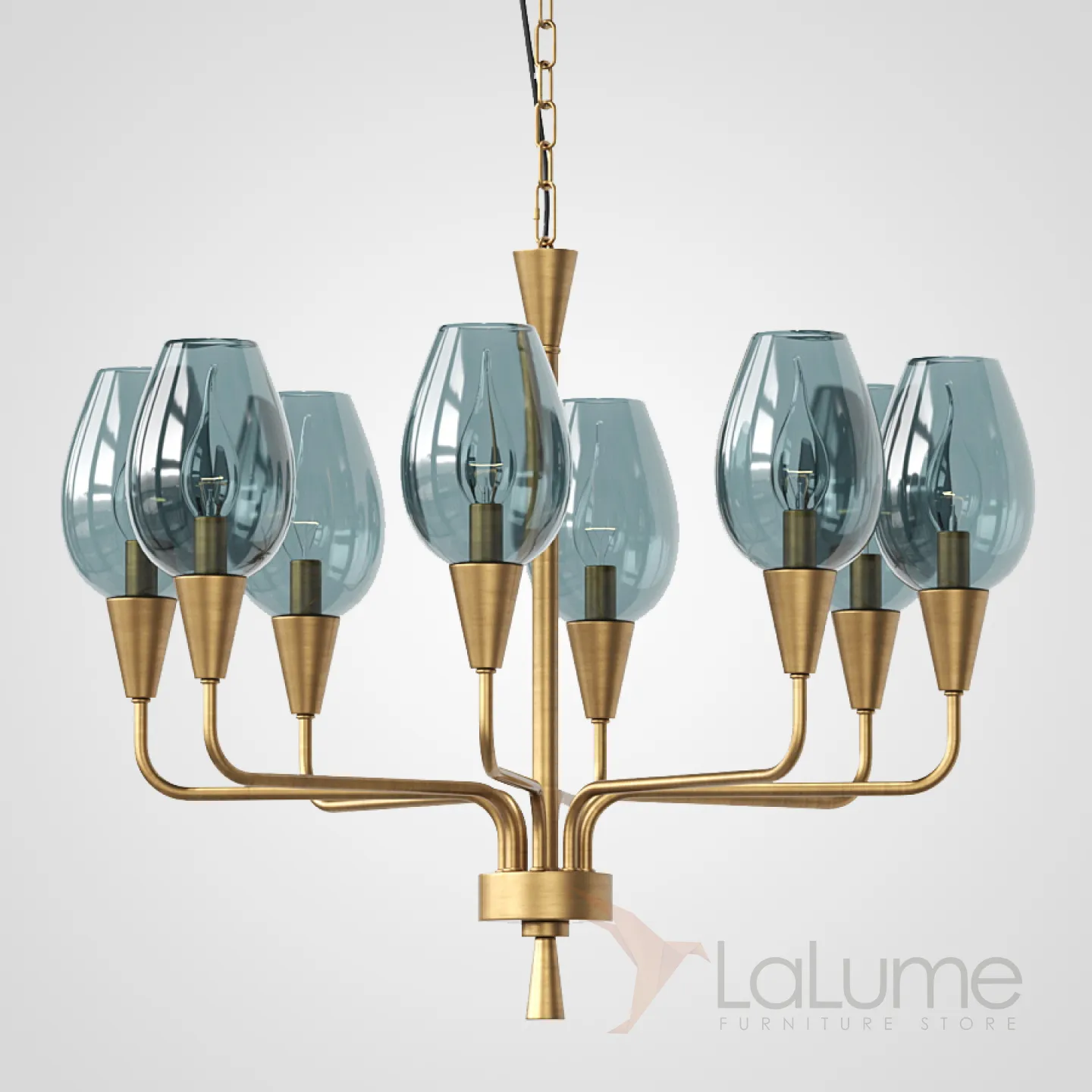 Модерн середины XX века — новая элегантная версия! Подвесная дизайнерская люстра Viola 8 Синий. Сочетайте эту модель вместе с бра VIOLA из этой же серии для создания единого стиля освещения в вашем помещении!