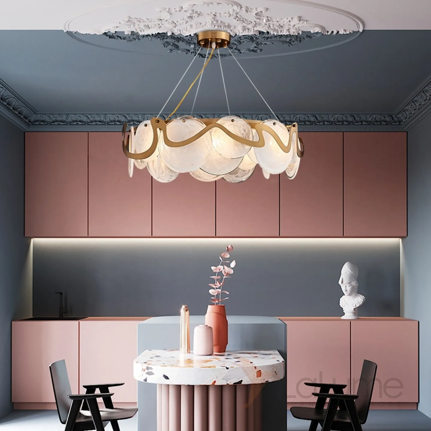 Потолочная люстра в стиле постмодерн со стеклянными подвесами ALESSA