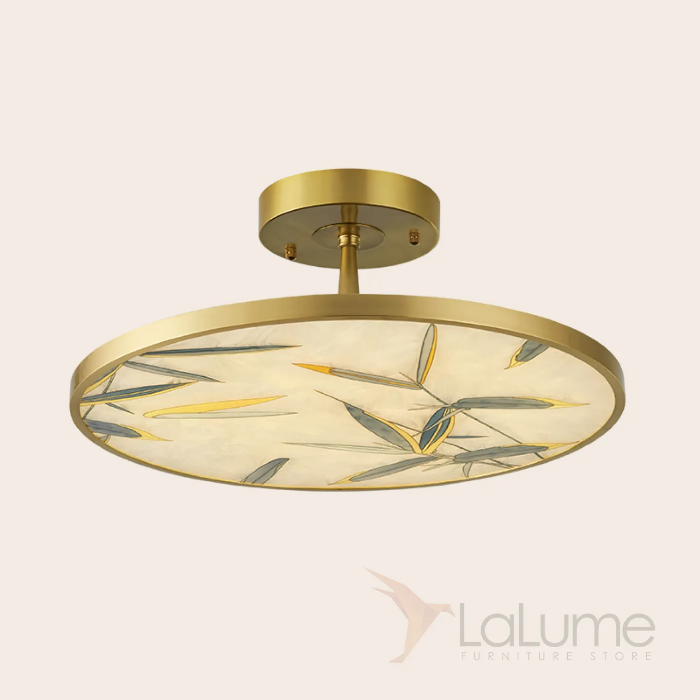Потолочный светильник в виде круглого стеклянного панно со светодиодной подсветкой, расписанного японскими мотивами AKIRA C