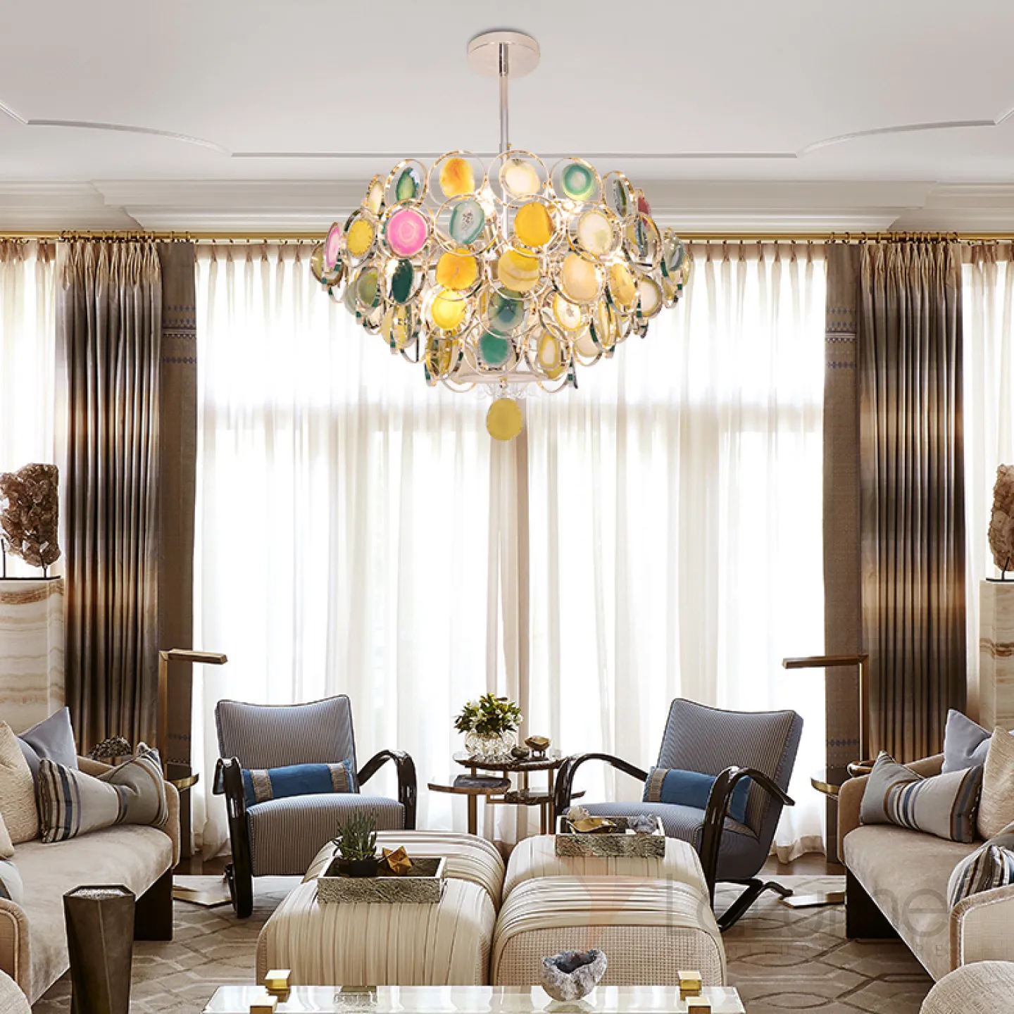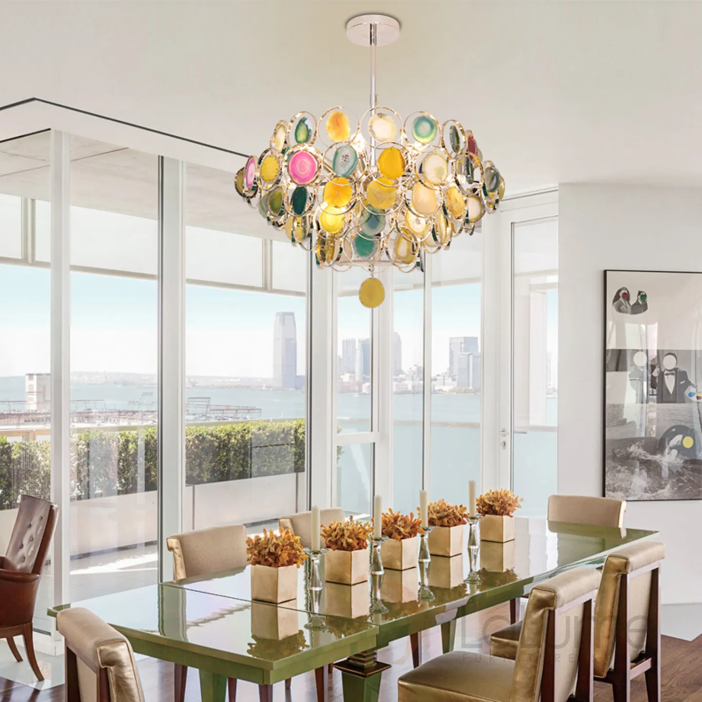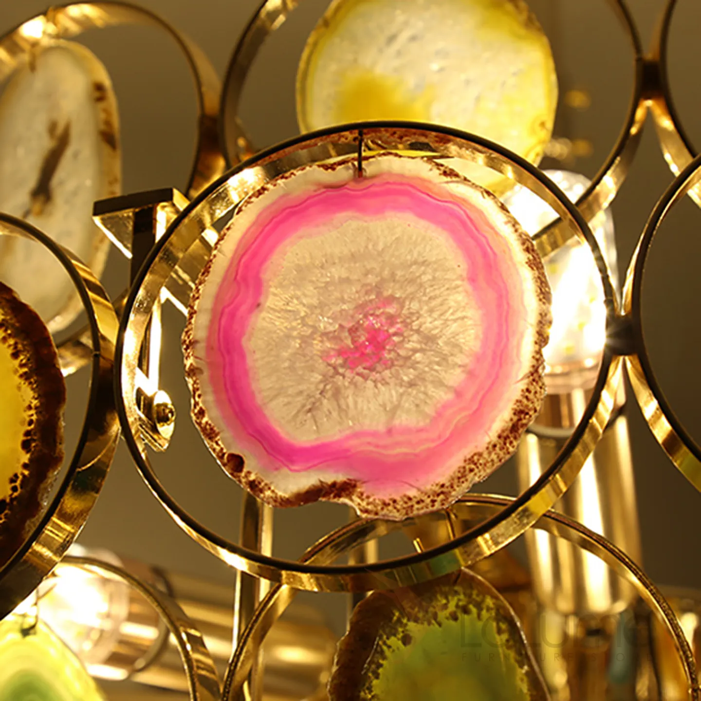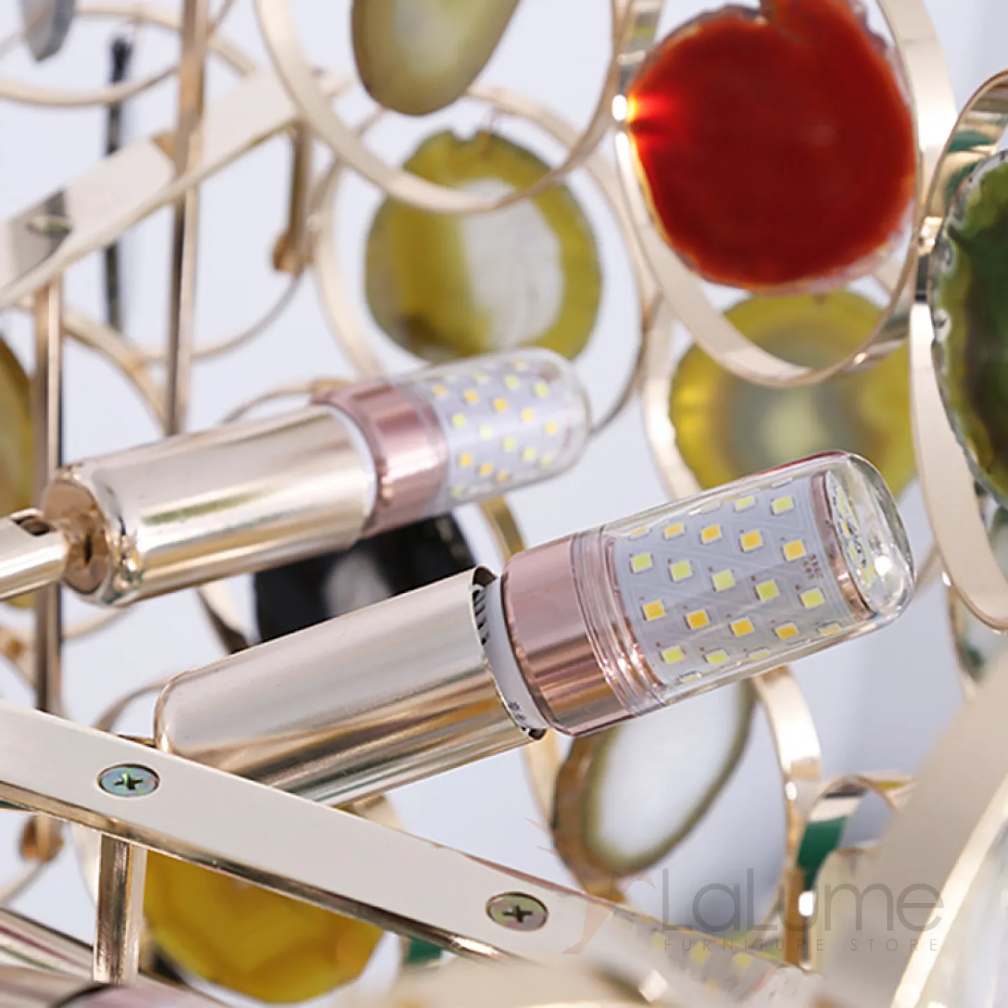 Настроение творчества с серией люстр из разноцветных спилов натурального камня, каждый из которых уникален и не повторяется. Украшение Вашего интерьера, как индивидуального продолжения вашей личности! Всю интересующую информацию Вы можете всегда уточнить у наших менеджеров! Можно использовать совместно с БРА этой же серии!