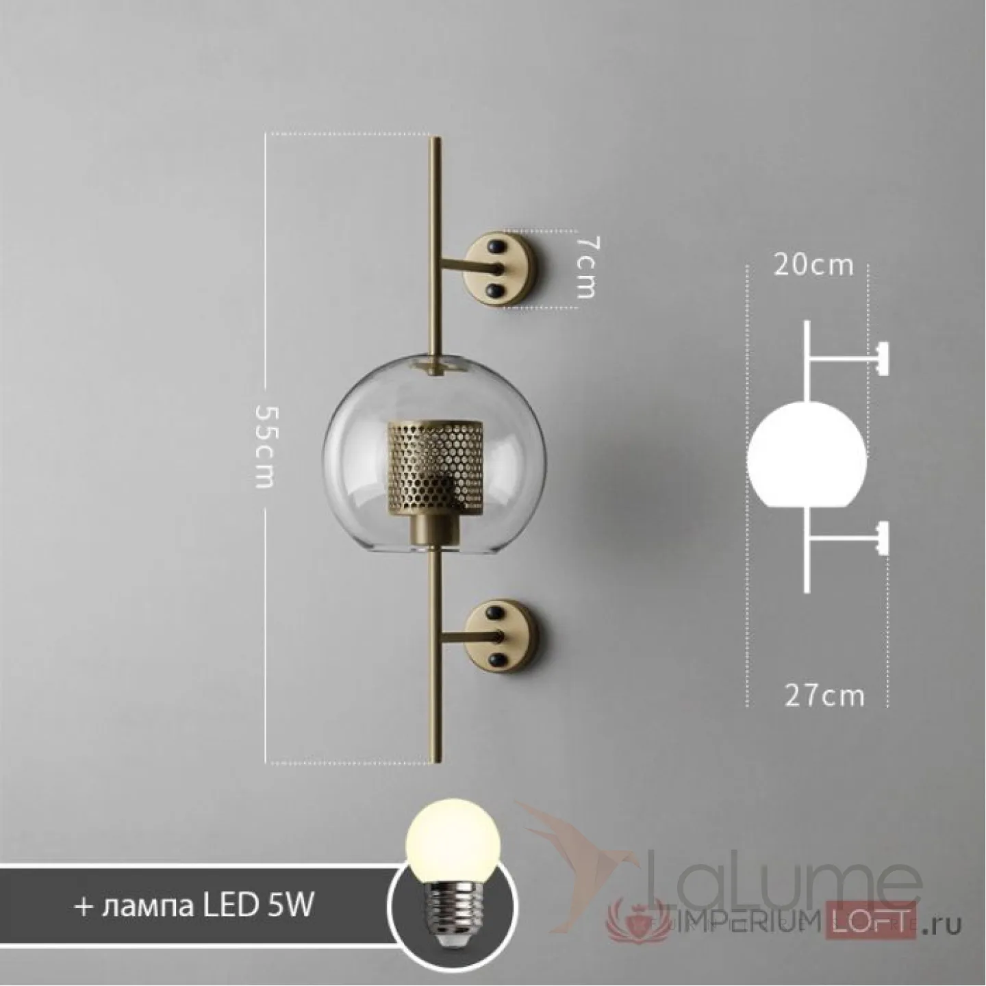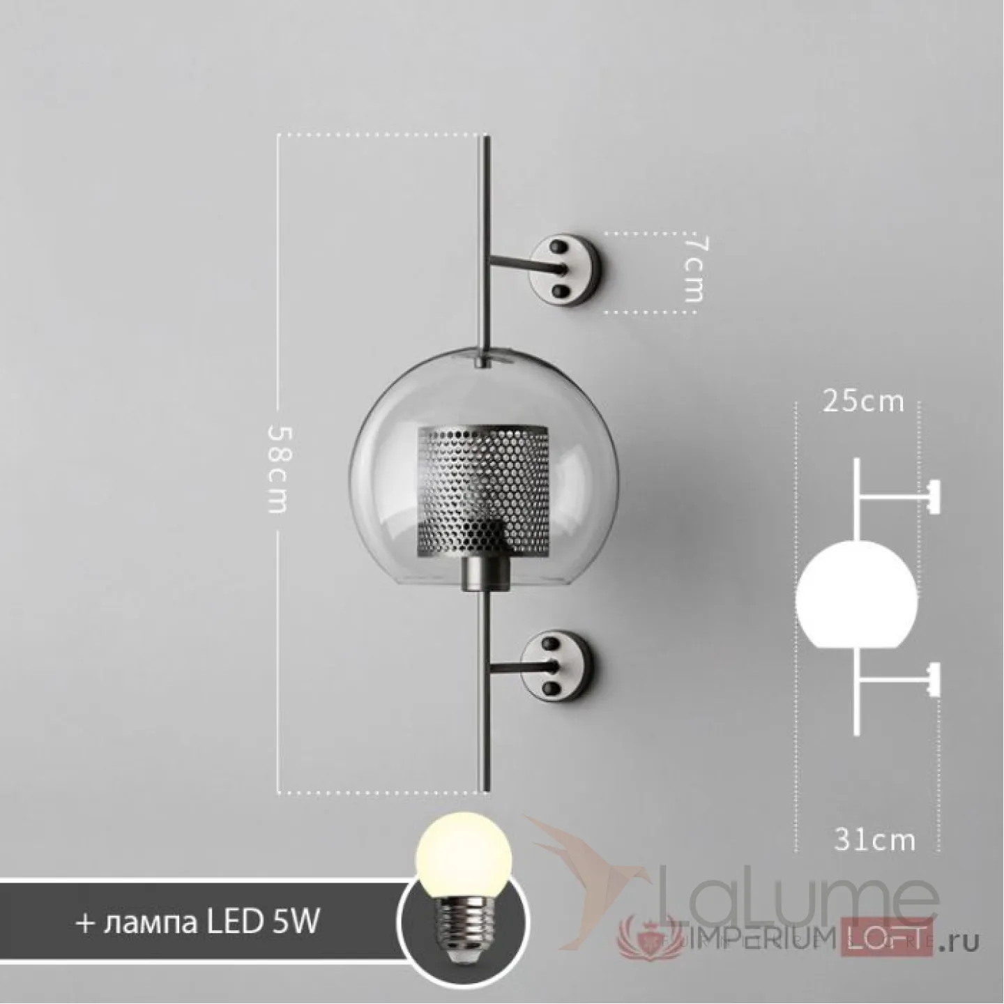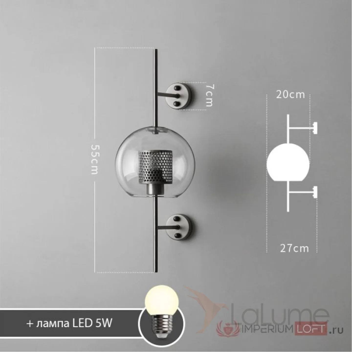 Настенный светильник CATCH WALL ball D55 steel от ImperiumLoft