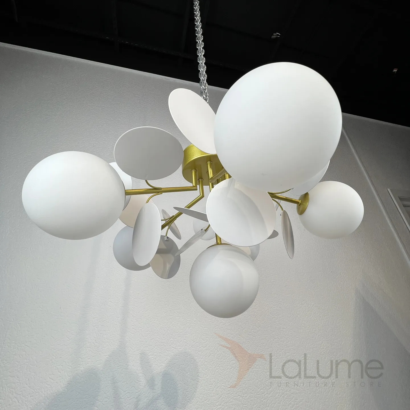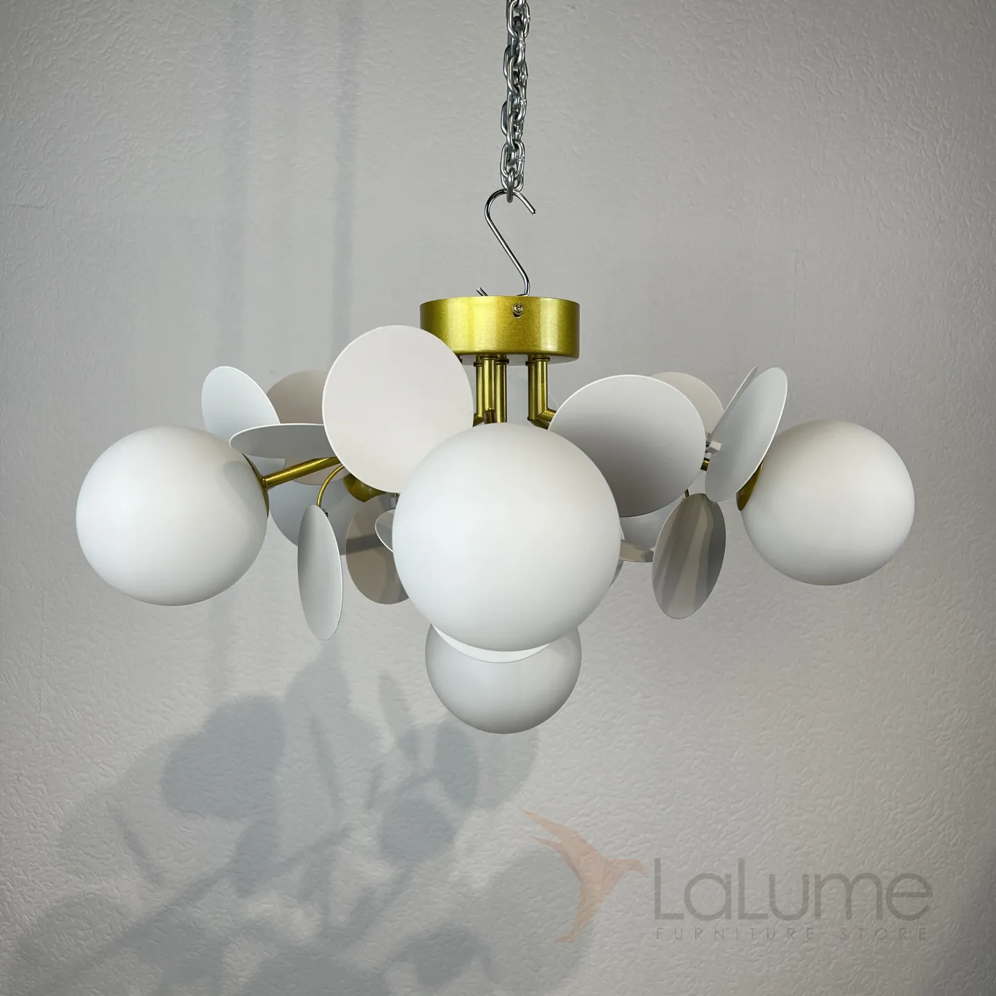Потолочная люстра в современном стиле с шарообразными матовыми плафонами и декором в виде дисков MATISSE C SELF D55 White