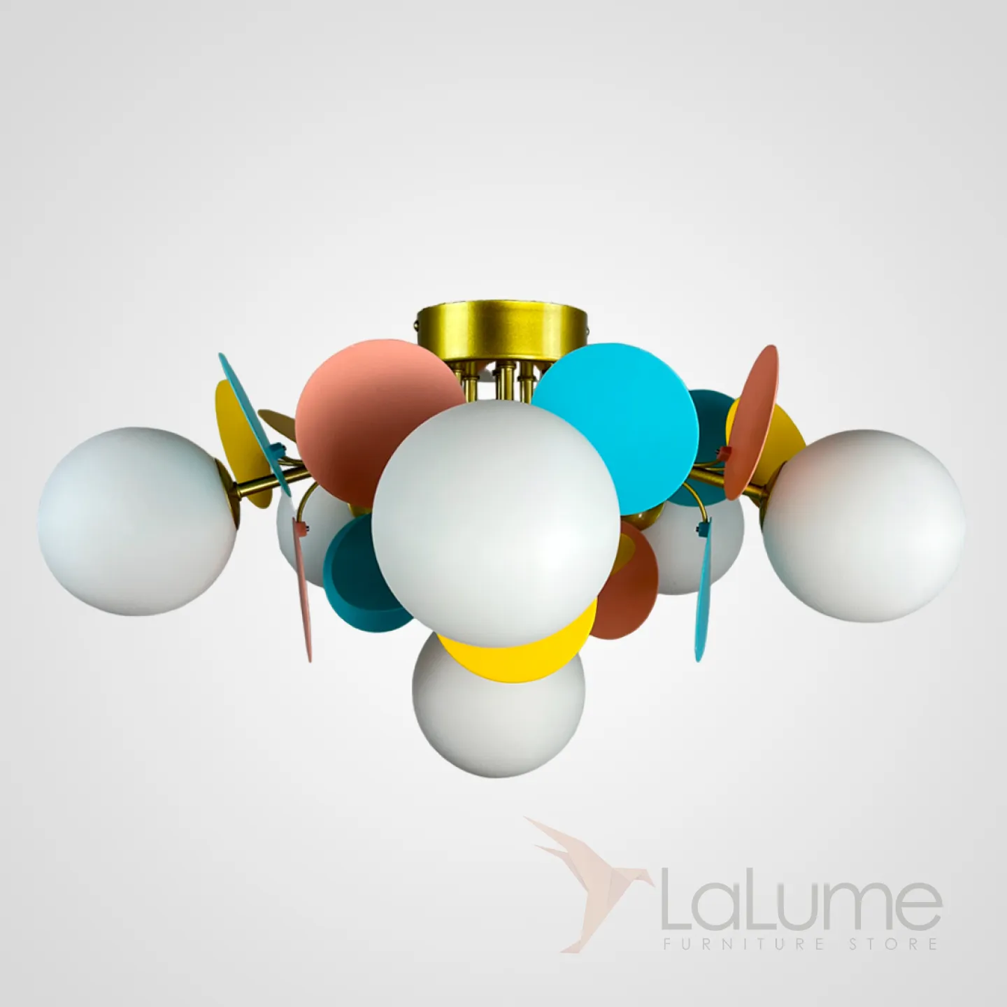 Потолочная люстра в современном стиле с шарообразными матовыми плафонами и декором в виде цветных дисков MATISSE C D55