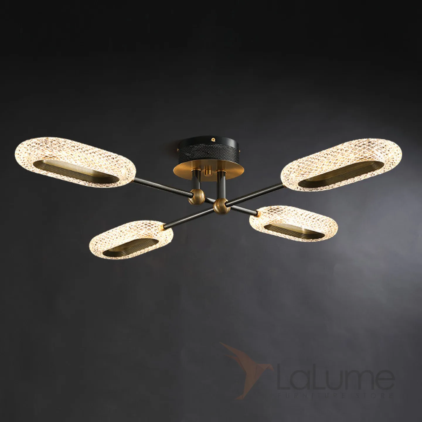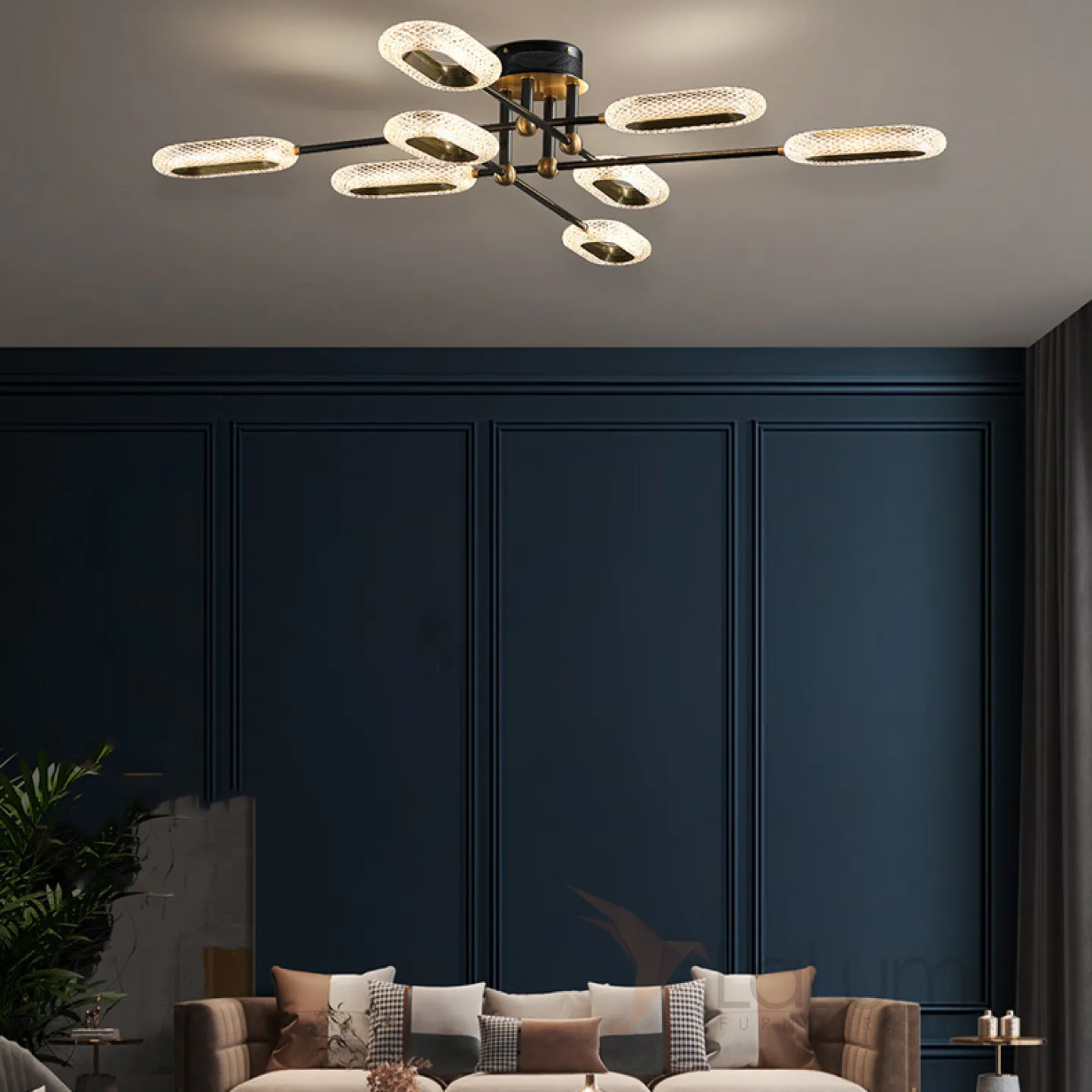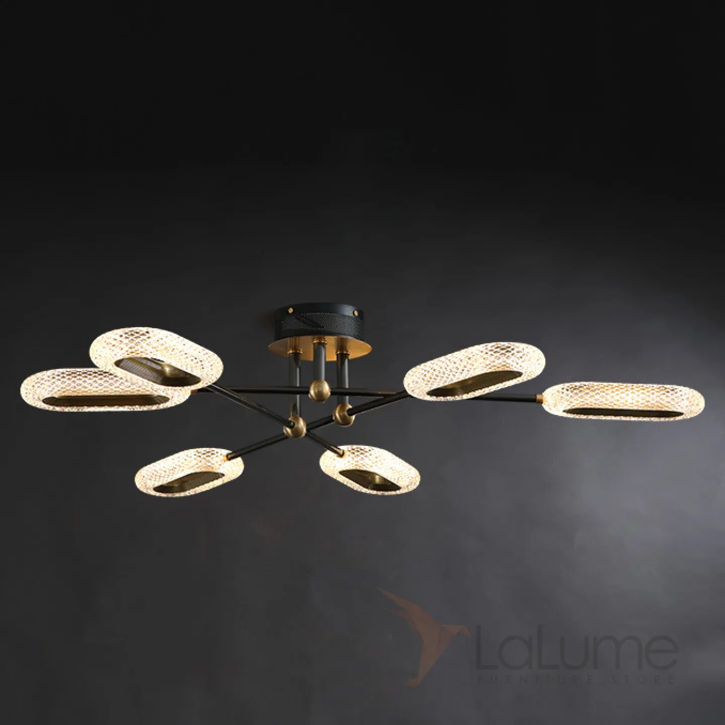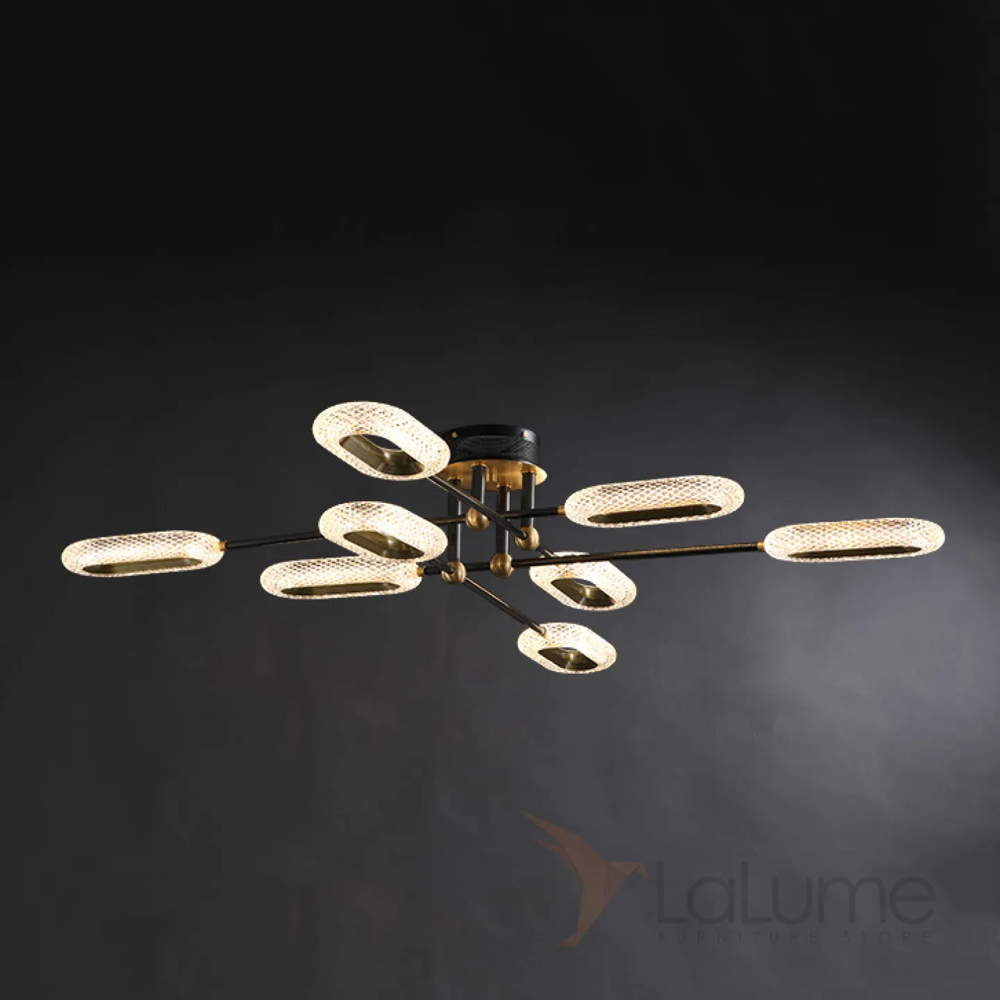 Серия потолочных люстр ALULA на лучевом каркасе с кольцевыми рельефными плафонами. Даже не очень высокий потолок больше не проблема для вашего стиля!