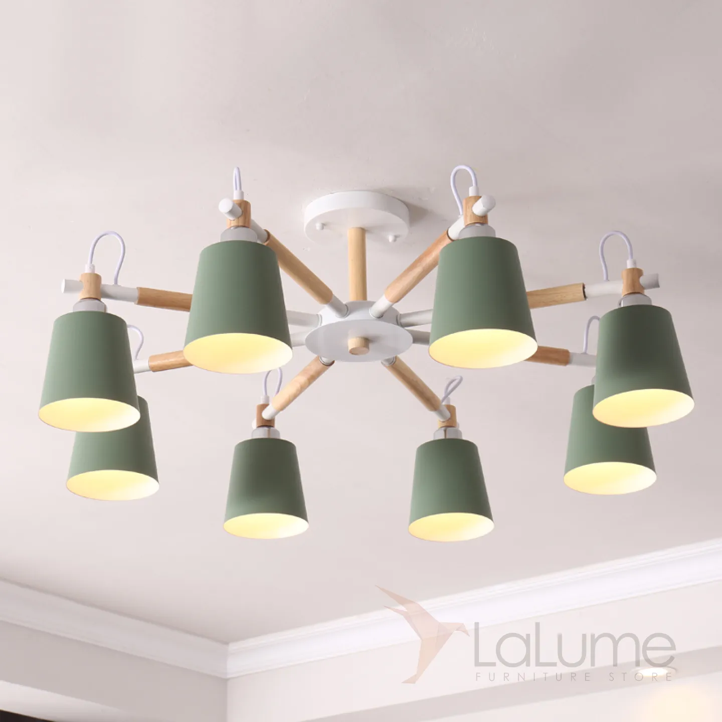 Люстра в скандинавском стиле с разноцветными металлическими плафонами. Стиль и бюджет в полном согласии.