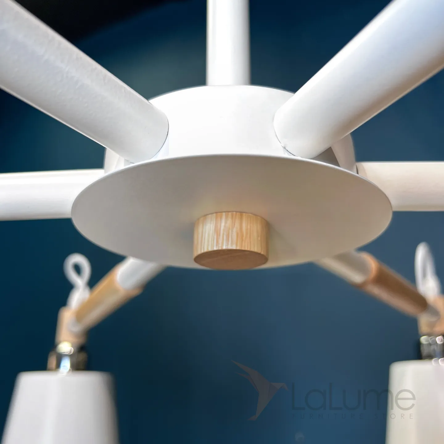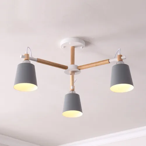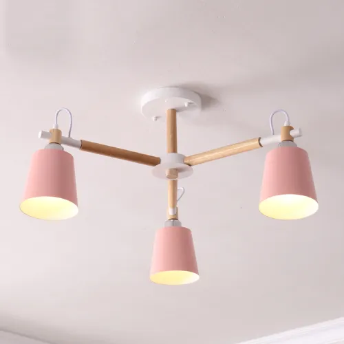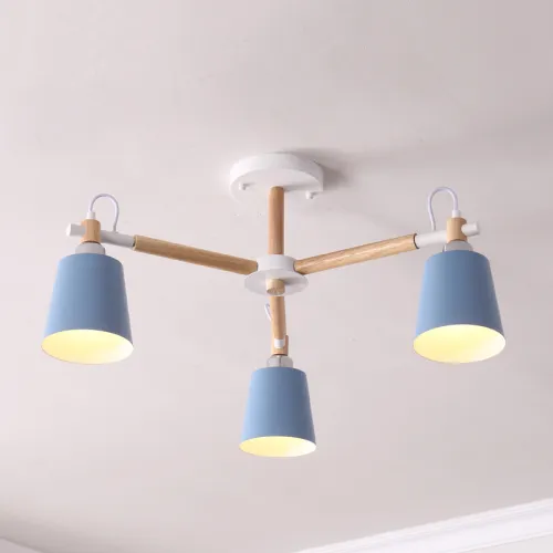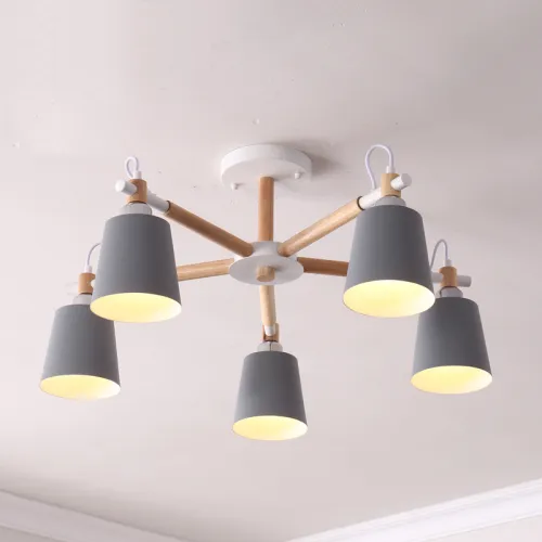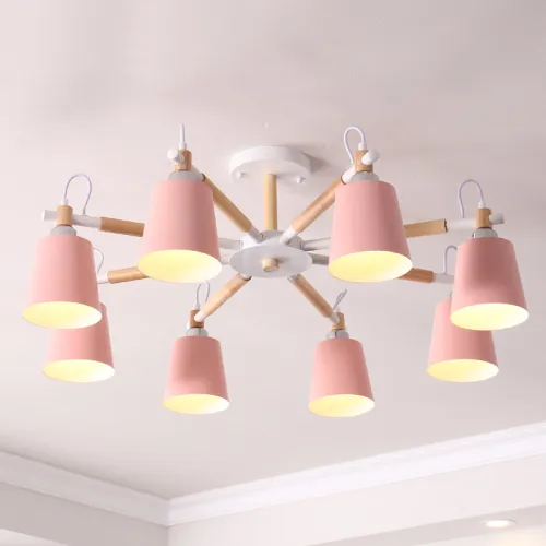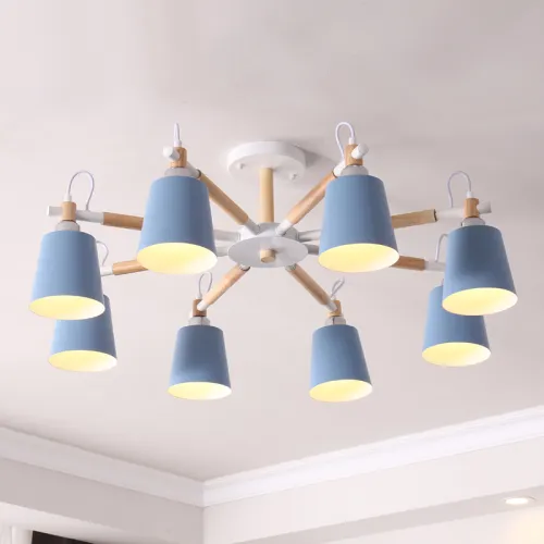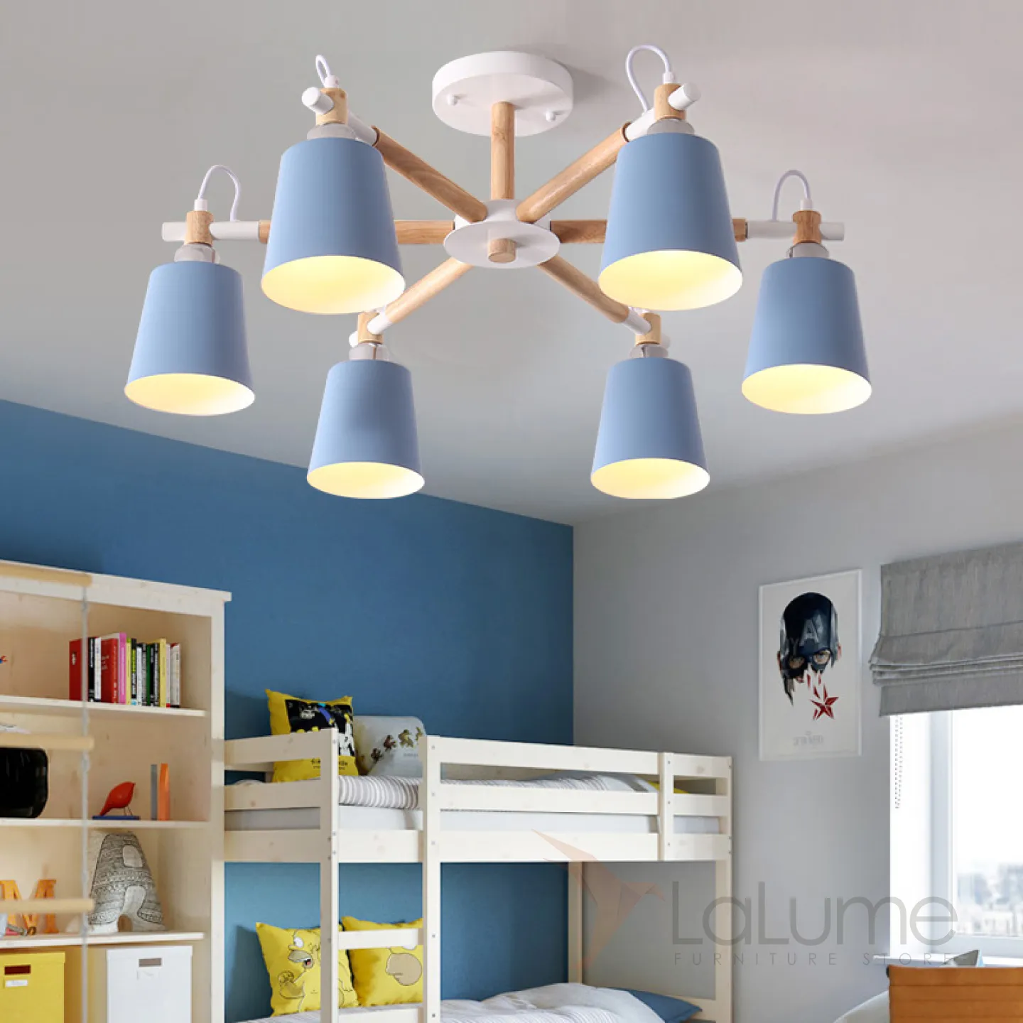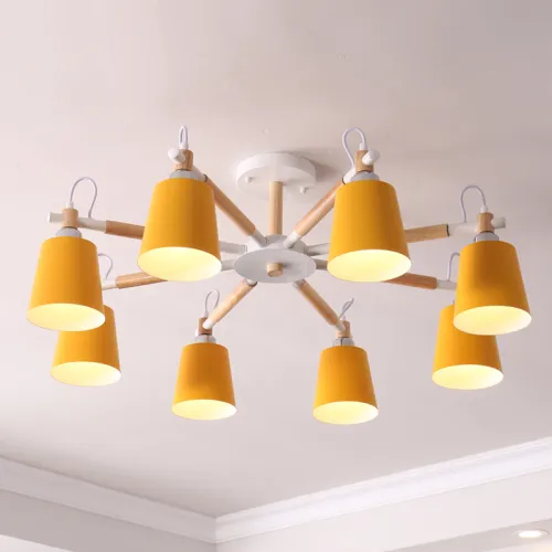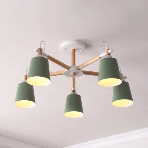 Люстра в скандинавском стиле с разноцветными металлическими плафонами. Стиль и бюджет в полном согласии.