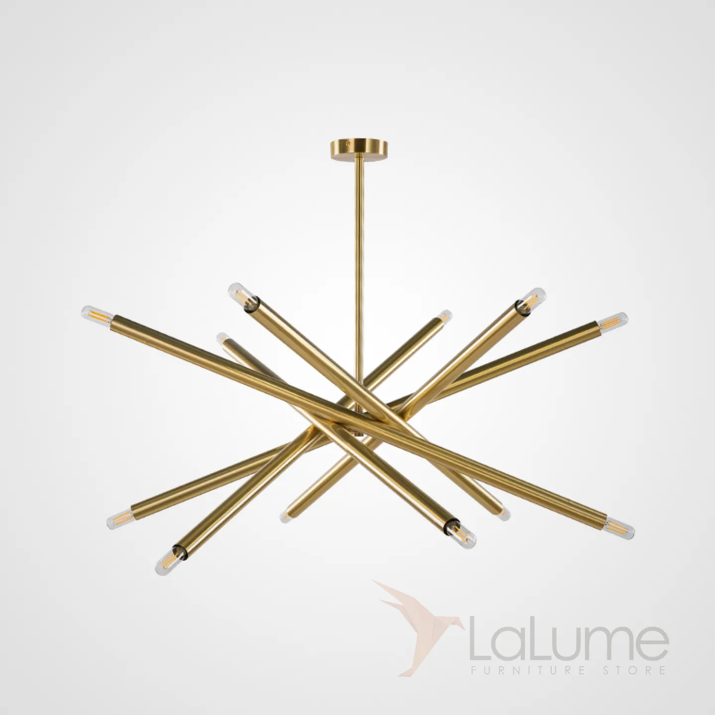 Минималистичный и статусный дизайн достигается за счет использования качественных материалов и необычной формы конструкции, которая к слову сказать преображается совершенно по-разному при использовании лапм Эдисона или дизайнрских LED, которые вы всегда сможете подобрать в огромном количестве в нашем каталоге. Люстра выпускается в усеченном и полноразмерном вариантах на 6 и 12 источников света каждый.